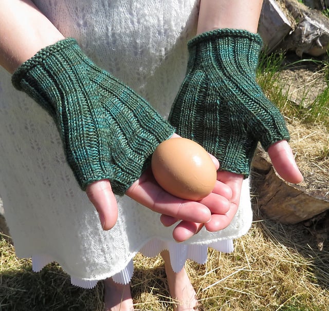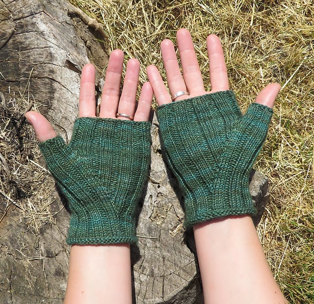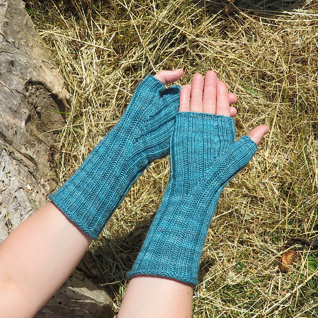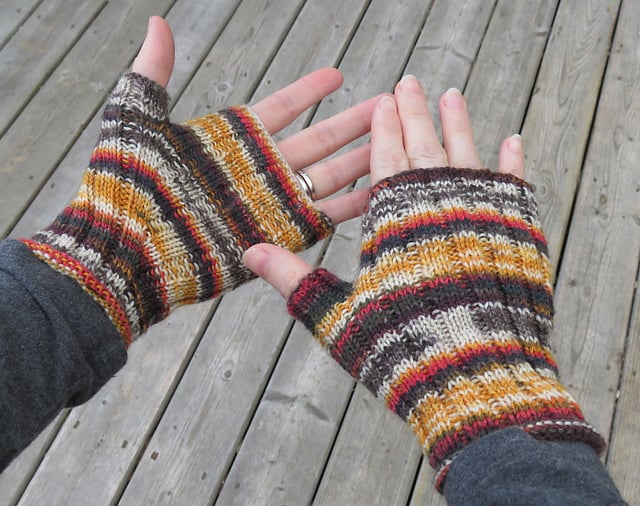The ribbed stitch makes these gloves comfortable and stretchy. They look fantastic with any kind of sock yarn - solid, striped or speckled.