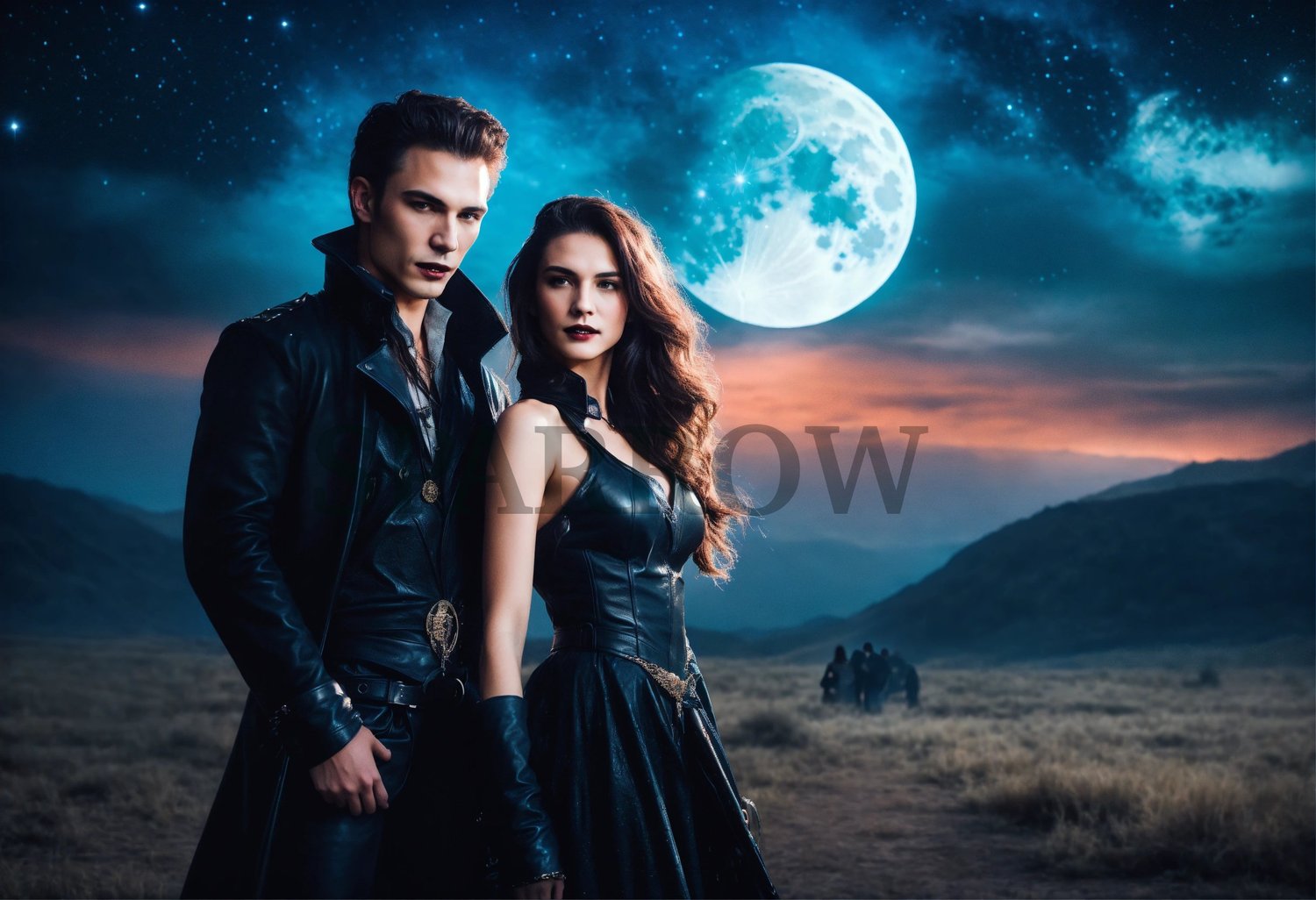 Keywords include: Paranormal romance, Love and supernatural, Fantasy couple, Ghostly love, Mystic romance, Enchanted lovers, Otherworldly passion, Supernatural relationship, Magical embrace, Eerie romance, Ethereal couple, Haunting love, Dark fantasy love, Mysterious connection, Ghostly soulmates, Fantasy love story, Paranormal passion, Enigmatic lovers, Mystic bonding, Spooky romance, Stock image, High-resolution, Fantasy background, Romantic scene, Love concept, Storytelling, Digital art, AI, Creative design, Surreal atmosphere, Dreamy backdrop, Magical elements, Beautiful couple, Artistic composition, Commercial use, Atmospheric lighting, Mystical setting, Relationship concept, Emotive characters, Fictional love, Editorial use, Advertising, Marketing, Social media, Website design, Blog post, Article illustration, Book cover, Magazine layout, Poster design, Brochure, Presentation, E-book, Print material, Digital publication, Educational materials, Background image, Wallpaper, Conceptual art, Storytelling Wolf shifter couple, Full moon background, Romantic moonlit scene, Alpha wolf pack, Fated mates embrace, Shapeshifter love, Enchanted forest setting, Moonlit meadow, Mystical bond, Howling wolves, Silhouetted trees, Nighttime romance, Alpha male and female, Lycanthropy fantasy, Supernatural passion, Mystic atmosphere, Moonlit wilderness, Fierce connection imagery, Romantic wolf eyes, Moonlit path, young adult romance, YA, PNR, paranormal romance, vampire, vampire hunter, Little Red Riding Hood, serialized online fiction cover image, Radish, Dreame, GoodNovel, iReader, Vella, SWAG, book, author, writer, blogger, creator