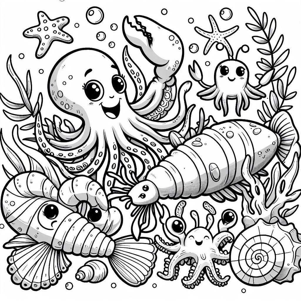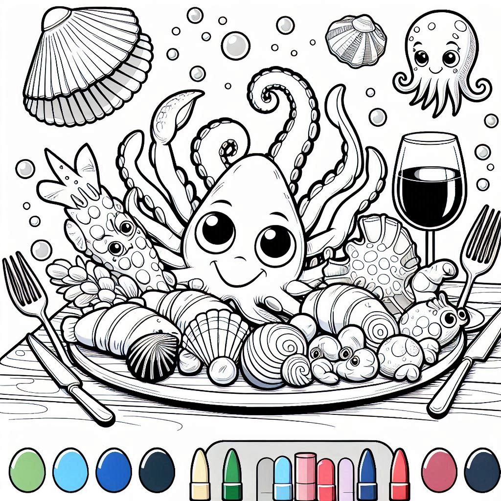 Sea foods, 62 designs, coloring ebook, digital printable product, instantly download