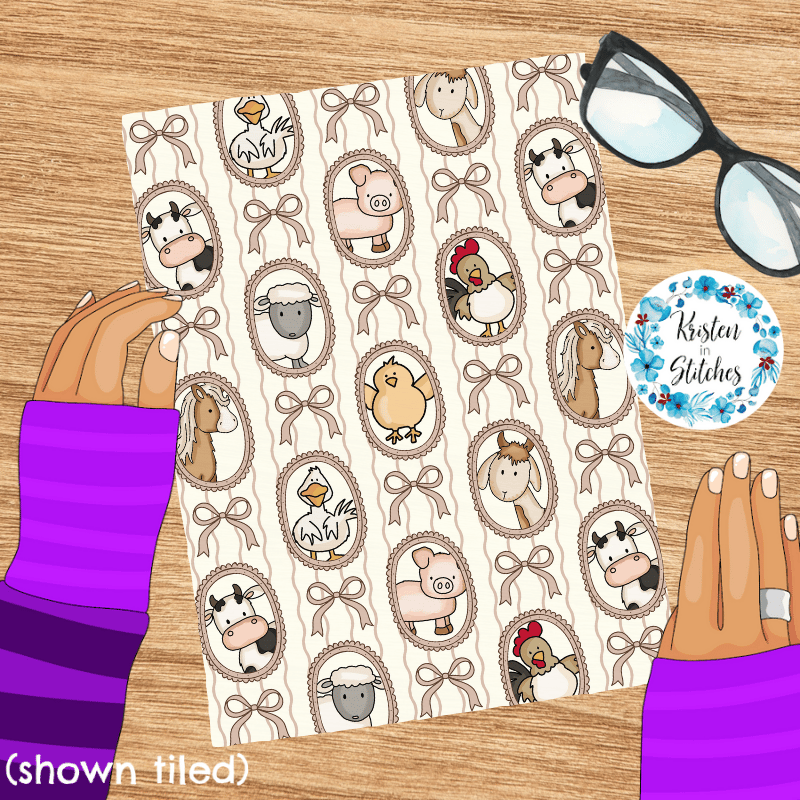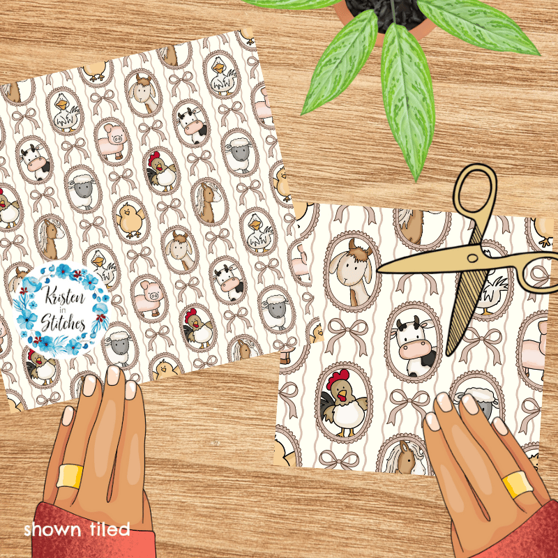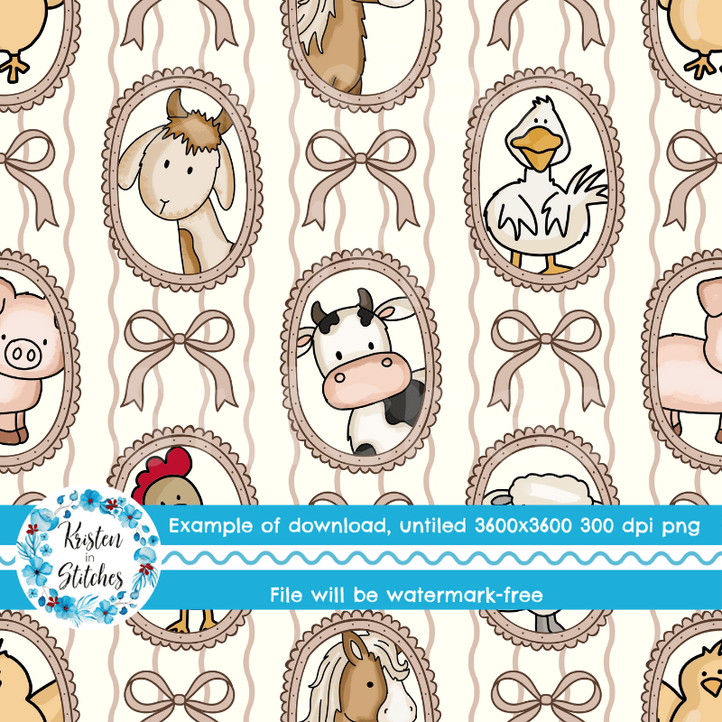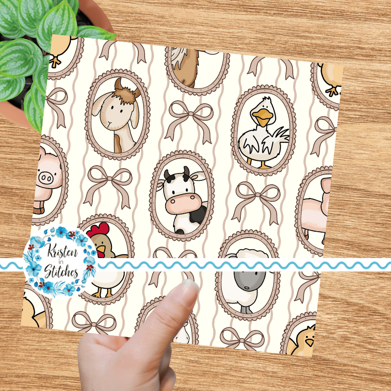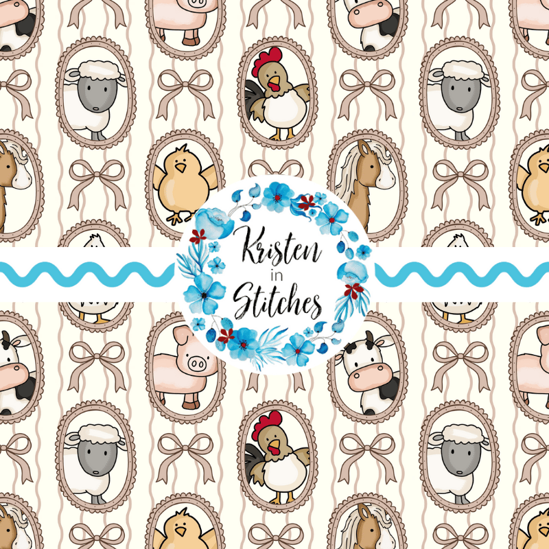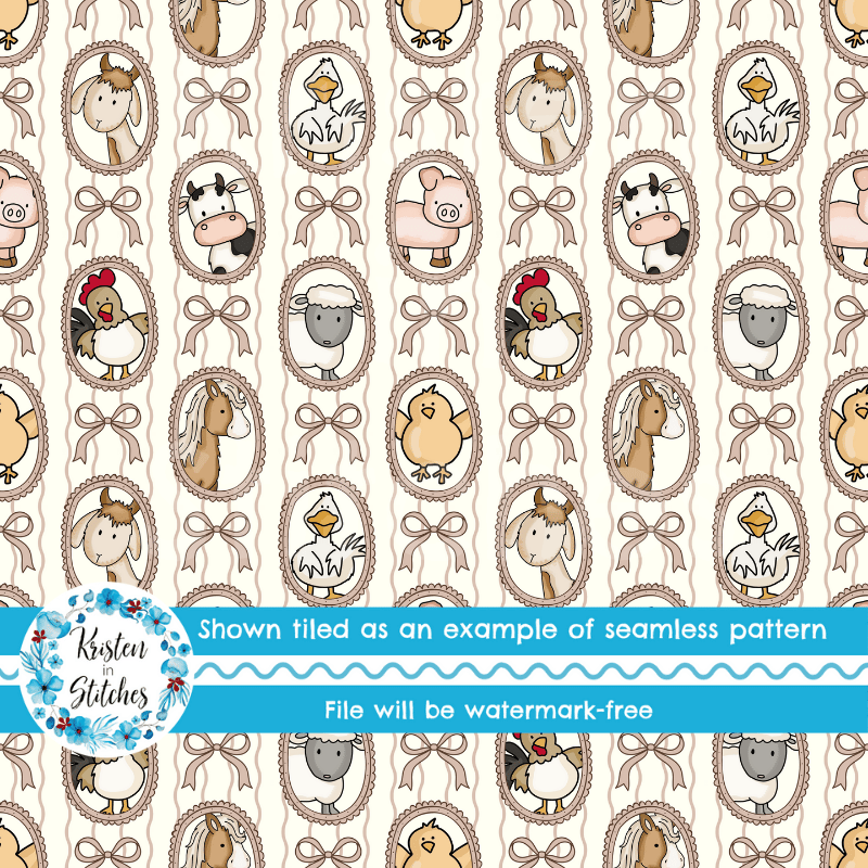 Farm Animal Friends Photo Wall Picture Frames Seamless Pattern in Ivory