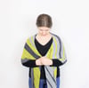 The Quiet Night Shawl was designed as a seasonal piece that can be enjoyed all year round! You can interpret the stars in the lace patterning as Christmas motifs, but also night sky constellations or simply geometric diamonds. Try using 2 neutral colours for the garter stitch sections, and a bright pop for the middle stripes and stars, or simply use 3 colours together that you love!