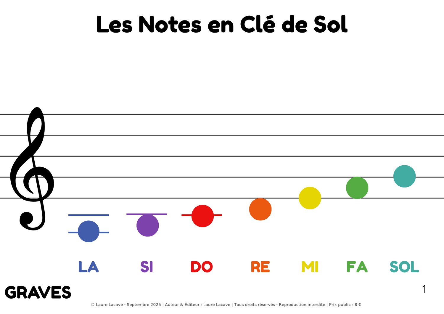 • 2 affiches “Notes en couleur + noms des notes en français – Clé de SOL”