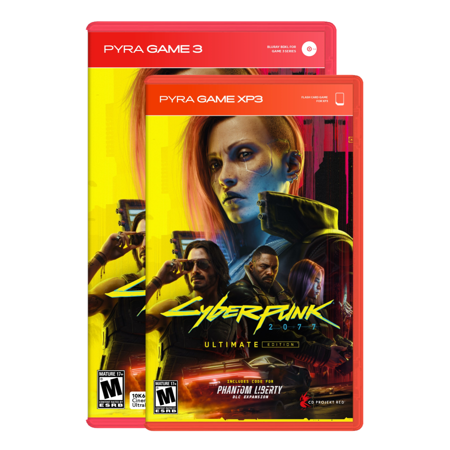 *Game file size for the Digital Version of the videogame is 80GB on Pyra GAME X3 | 3 and 62GB on Pyra GAME XP3. The Phantom Liberty DLC Expansion needs to be downloaded via internet for the Pyra GAME XP3 version of the game with a file size of 15GB.