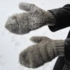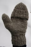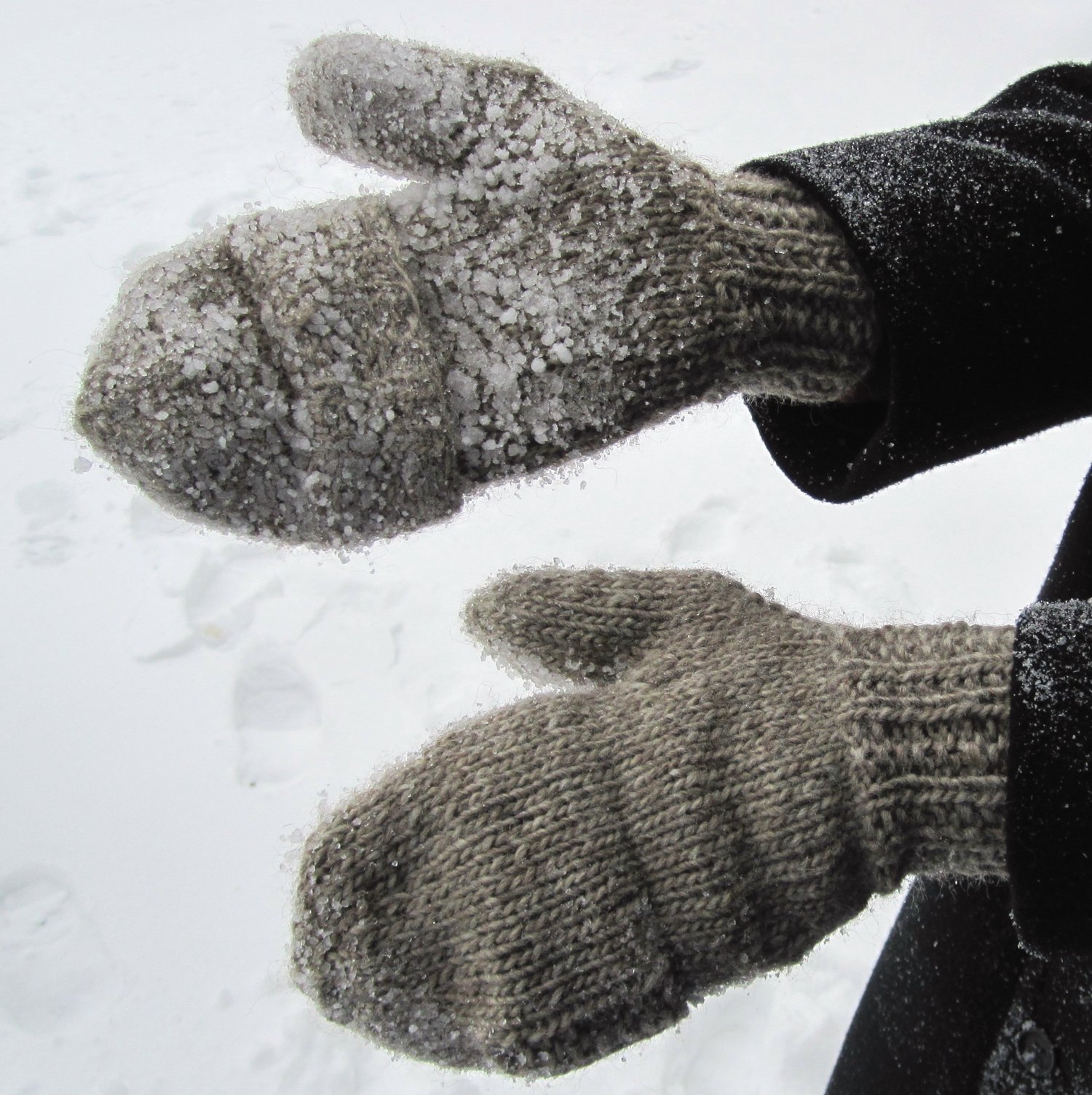 These mittens were inspired by some lovely handspun purchased at the Mass Audubon’s Drumlin Farm in Lincoln, MA. The wool will gradually felt slightly with use, adding even more to the waterproof and warm aspects of these mittens. Heavy worsted weight wool means the knitting on these flies by!