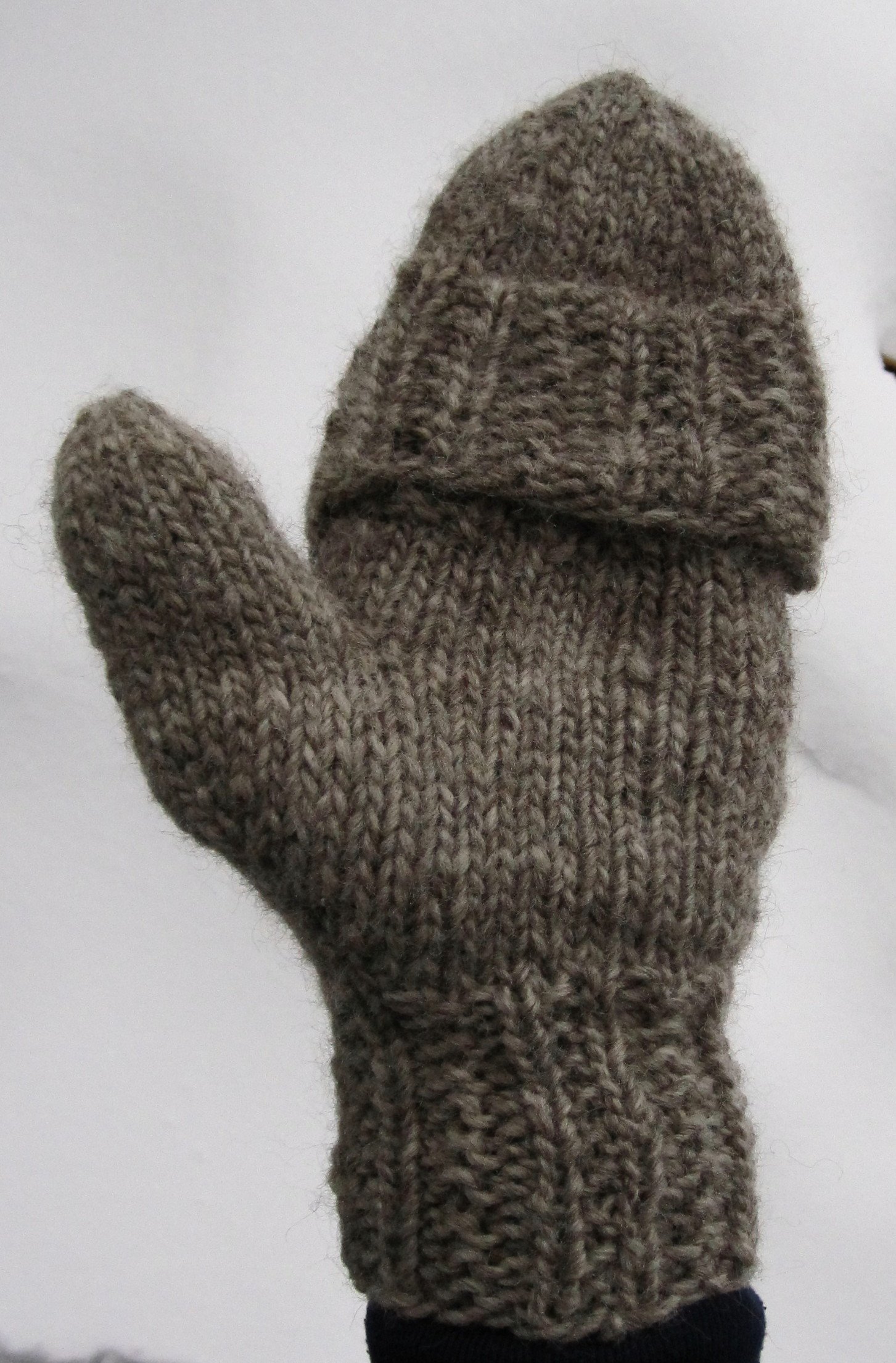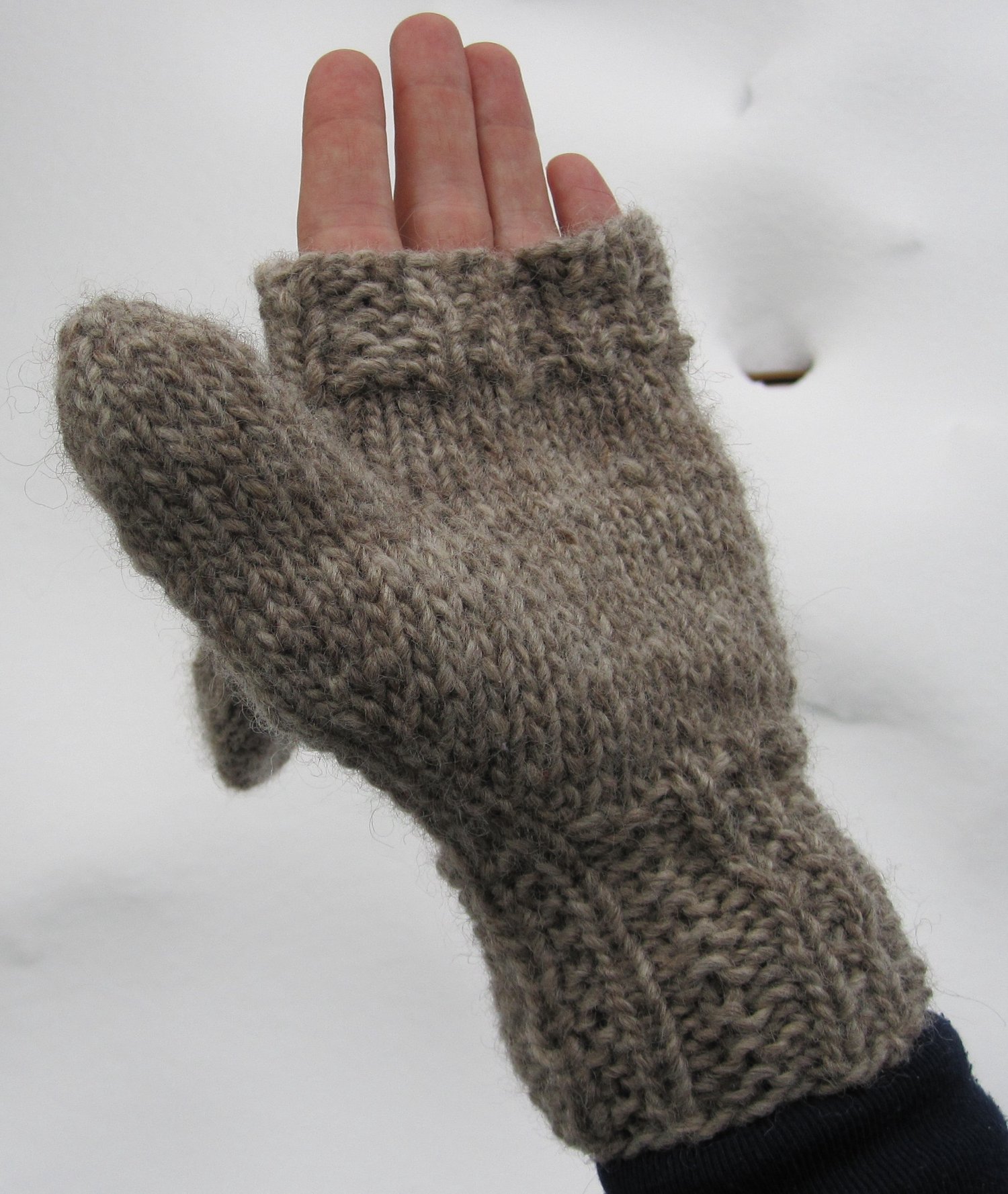 The pattern includes instructions for a child’s size and three adult sizes, with modifications to make either a fingerless or “regular” set of mittens rather than convertible ones.