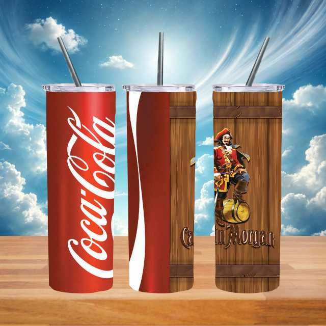 Set sail on a flavorful adventure with this bold and creative 20 oz sublimation tumbler, combining the iconic Coca-Cola and Captain Morgan brands into one unforgettable design. Featuring a fusion of Coca-Cola’s classic red and white branding with Captain Morgan’s pirate-inspired charm, this tumbler is perfect for fans of both legendary drinks.