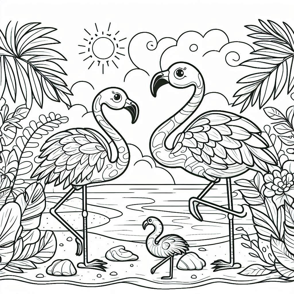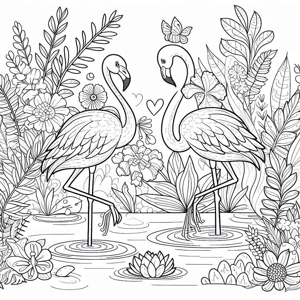 Flamingos, coloring ebook, 74 designs, digital printable product, instantly download