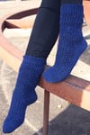 The socks are very stretchy and should be worked with more negative ease the usual, the lace pattern needs to be open up.