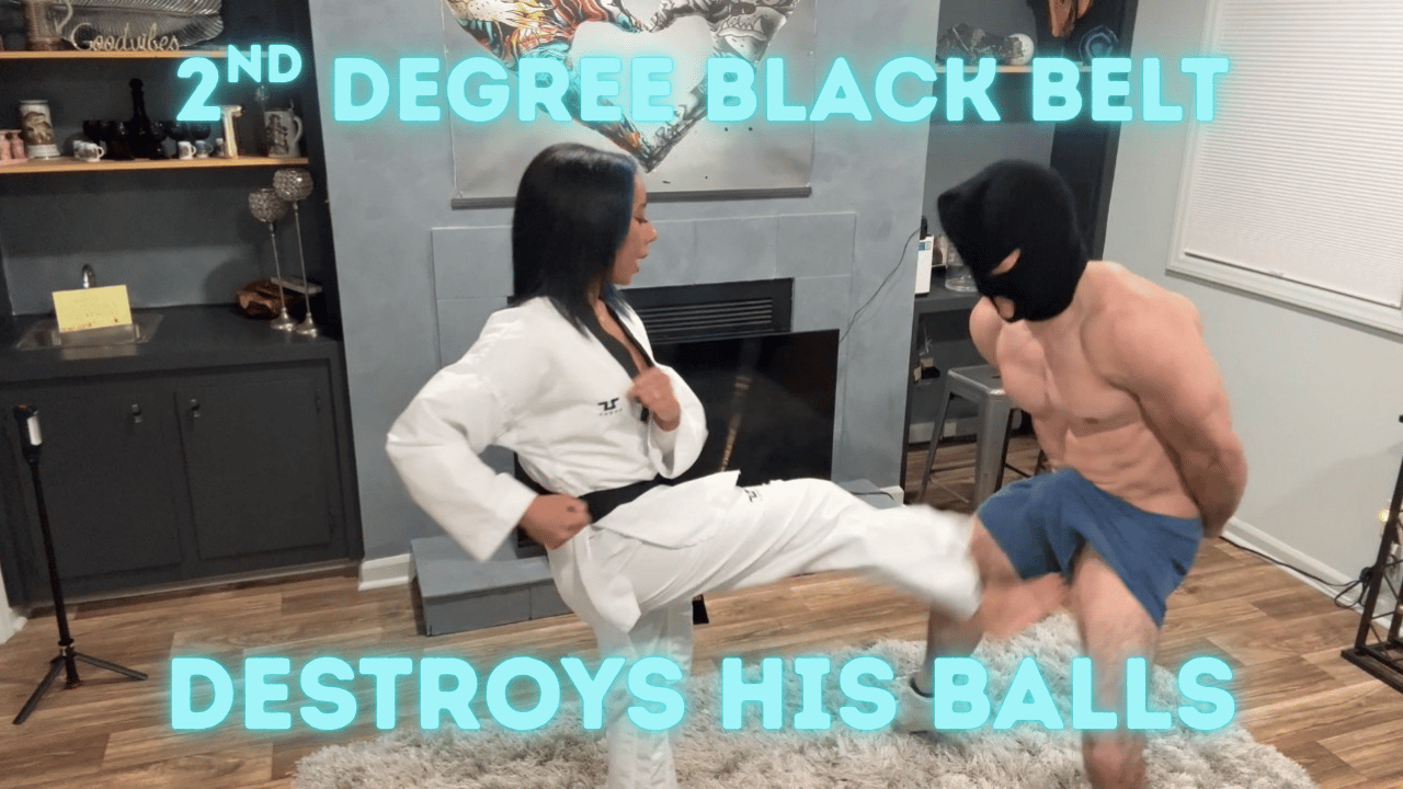 My first session as a second degree black belt was amazing - I'm more powerful, stronger, and can demonstrate insane technique of how to destroy his manhood. Enjoy!