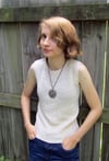 A little bit prim and proper when worn with a jacket or shrug, a little bit daring from the back, this cotton tank top with a deep v-back and subtle texture can go from office to party in a flash. A little bit of Marilyn Monroe styling, with a dash of the carefree rebel.
