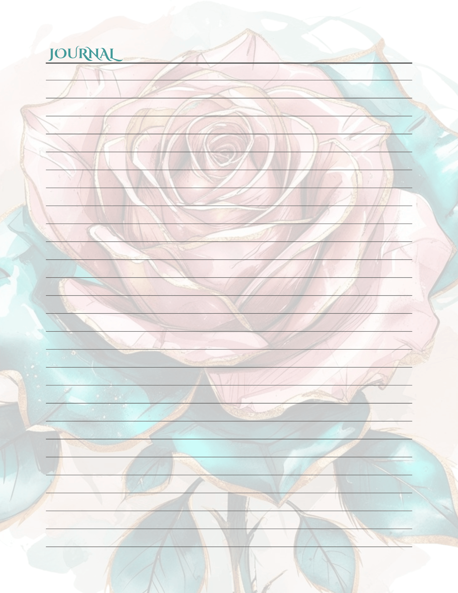 The calming watercolor rose background fosters a tranquil atmosphere for emotional processing and setting thoughtful intentions that you can build into your self-care sessions.