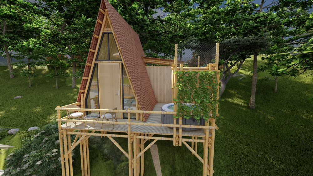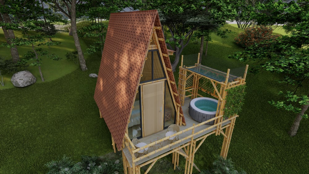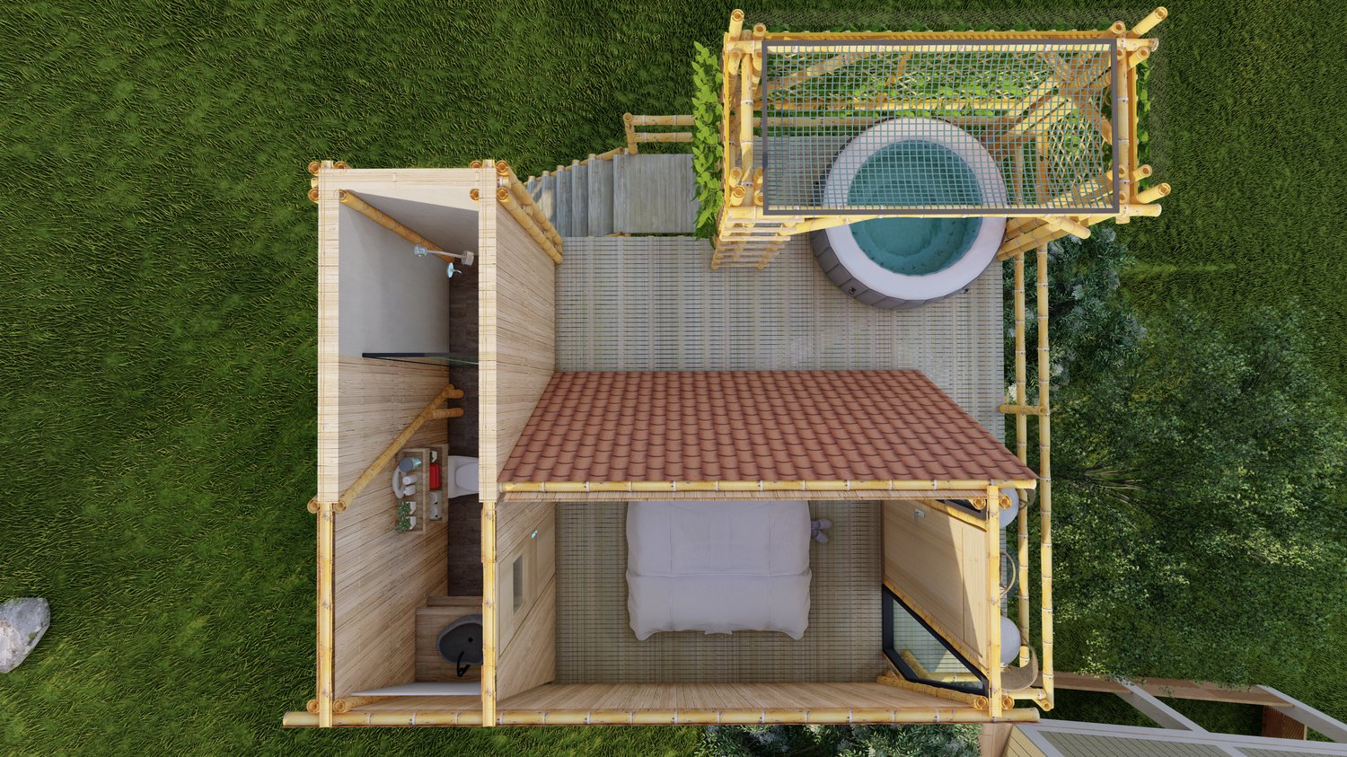 Imagina tu propia cabaña ecológica en guadua o bambú, con terraza panorámica y jacuzzi exterior, perfecta para: