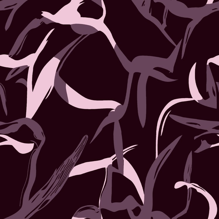 Elegant black floral line art on a textured mauve ground.