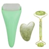 3-in-1 Facial Face Ice Jade Roller and Gua Sha Tool, Natural Real Jade Anti-Wrinkle Face Eye Neck Massager Tool, Reduce Wrinkles, Puffiness, Migraine, Redness, Pain and Injury, Green