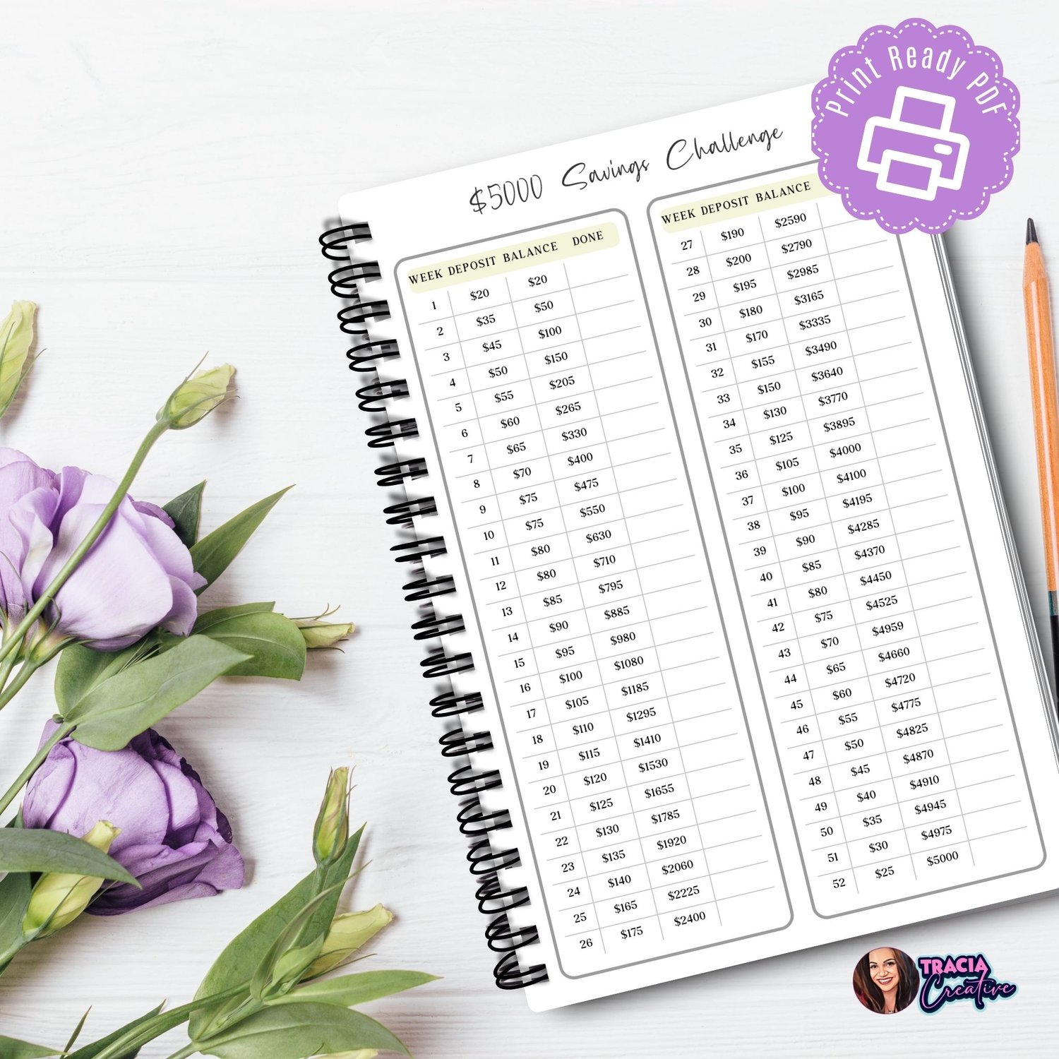 - A5 Minimalist $5000 Savings Challenge Finance Planner (printable PDF)