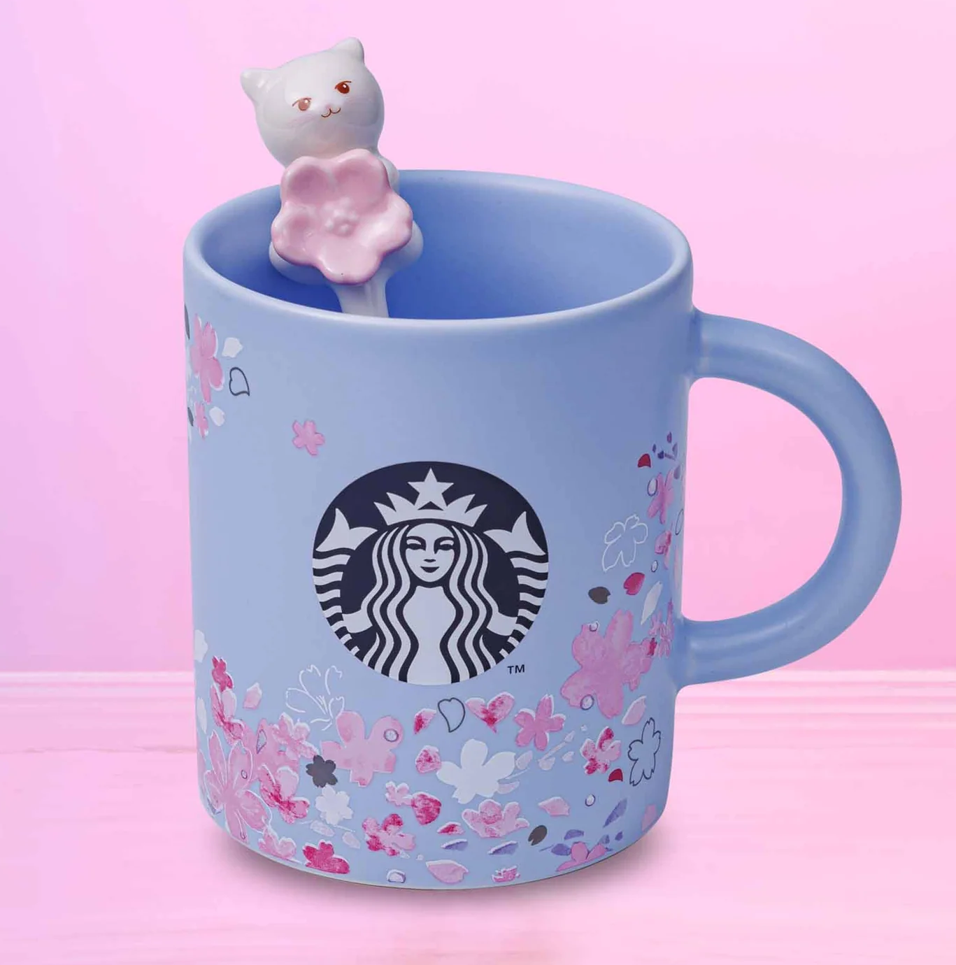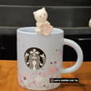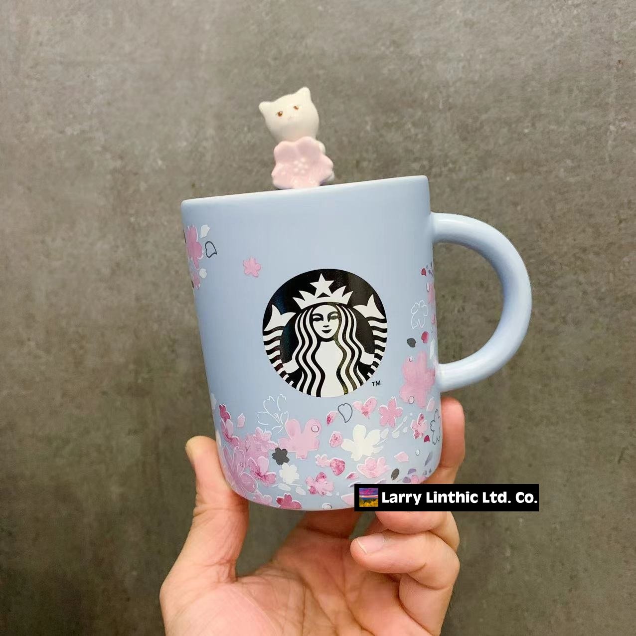 2024 Starbucks Hong Kong/Macau Sakura Cherry Blossom Purple 12oz Porcelain Mug with Cat Stirring Rod