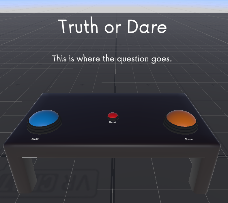 - Drag the Truth or Dare prefab from the Prefab folder into your world.