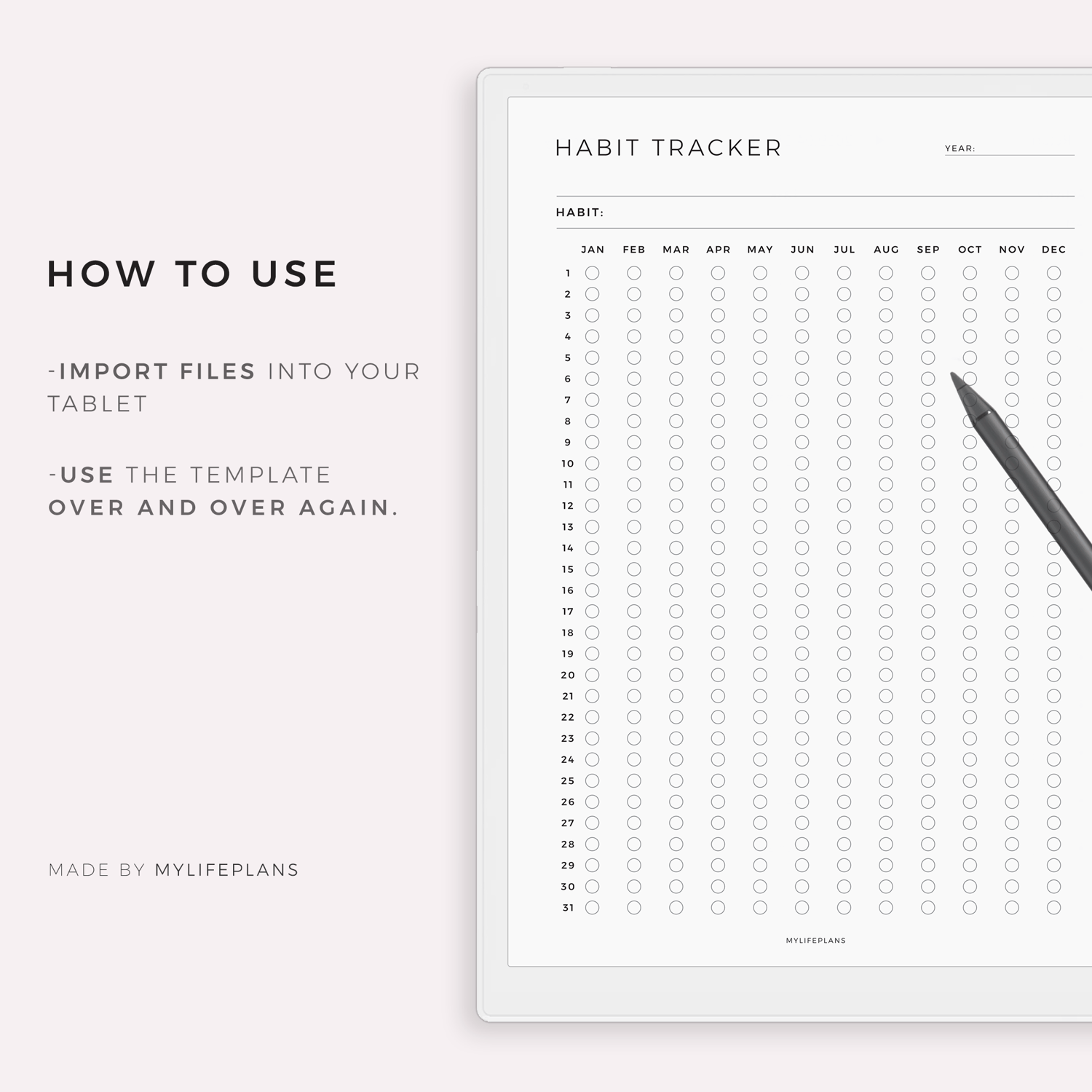 Yearly Habit Tracker Template for Remarkable, Supernote, Kindle Scribe, Boox, Kobo