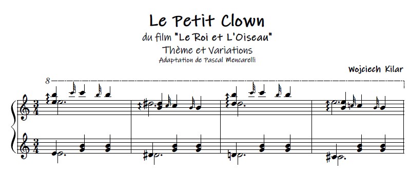 W.Kilar - Le Roi et l'Oiseau - Le Petit Clown - Partition Piano