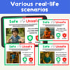 Students will look at pictures or read short scenarios and decide if the action is safe or unsafe. Great for safety lessons, or classroom behavior activities!