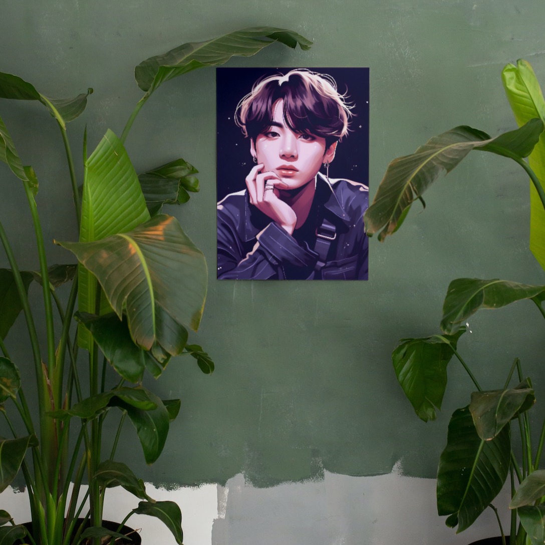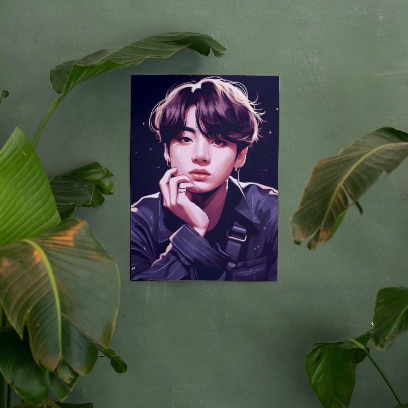 You won't be able to resist this spectacular Jungkook digital art print! 💜🎨 Perfect for printing, framing, and adding a touch of beauty to any space in your home! 🏠✨ Jungkook exudes charisma in a sleek leather outfit. Against a backdrop of twinkling stars, his captivating gaze and charming aura make him irresistibly cute and handsome. It's a masterpiece that will leave you starstruck! 🌟😍✨