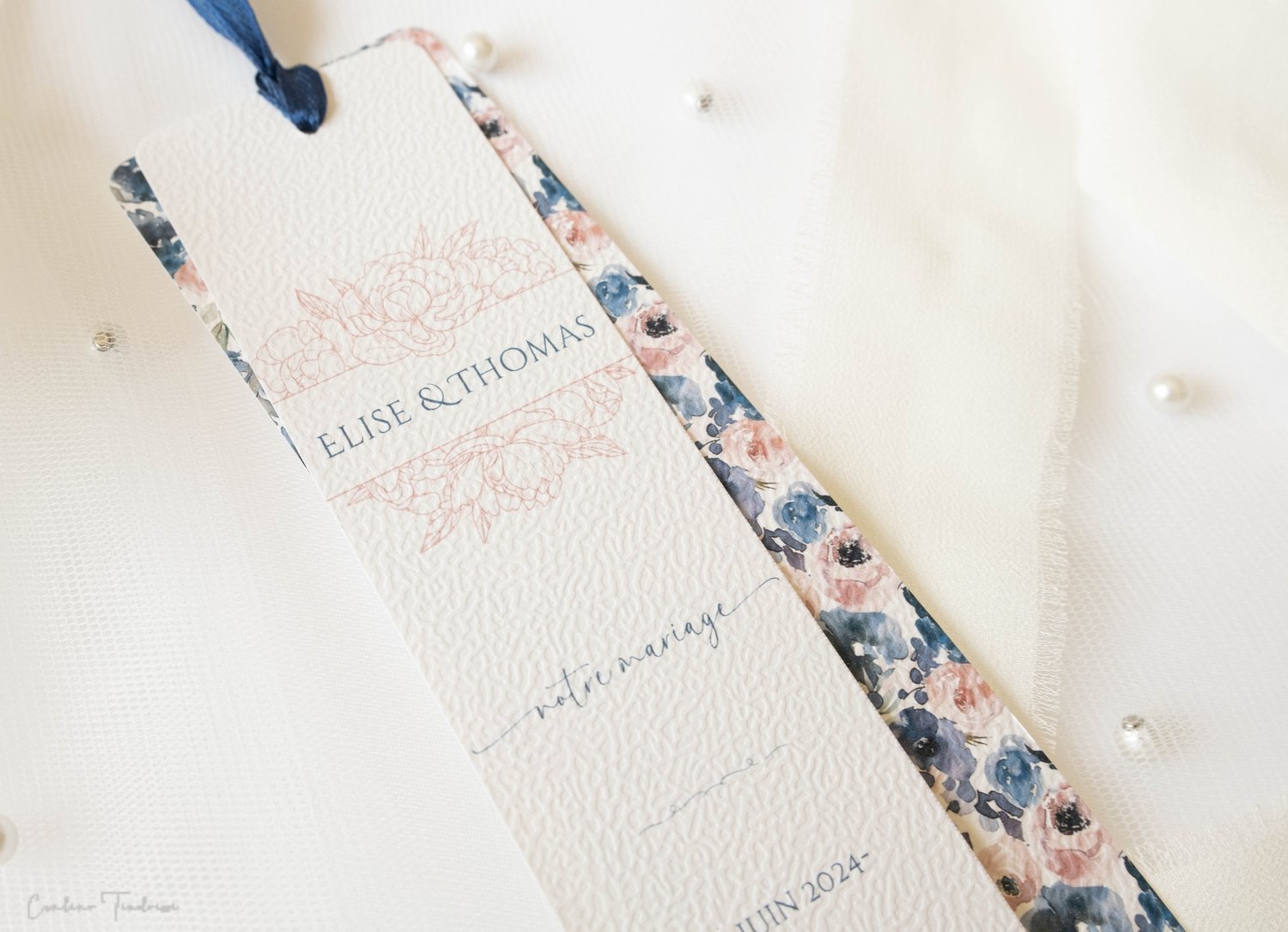 Des frais supplémentaires peuvent s'appliquer en cas de modification profonde du signet (ex : création d'un nouveau fond pour le signet, création intégrale d'un signet selon les couleurs ou le thème de votre mariage). Dans ce cas, un devis sera obligatoirement proposé.