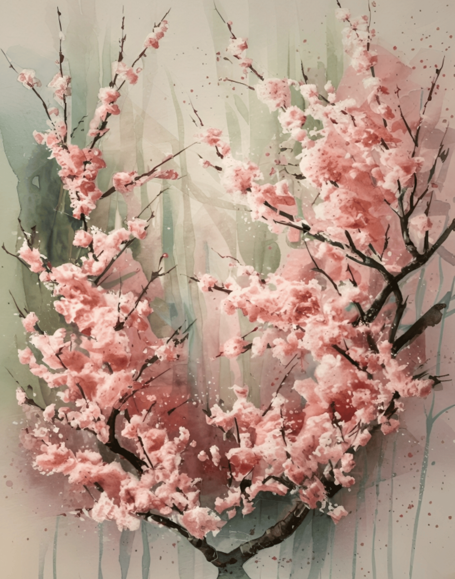 Cherry blossom, Japanese Cherry Blossom, Best Cherry Blossom Painting, Calm Nature, Landscape, Nature, Painting, Japanese Landscape Painting.
