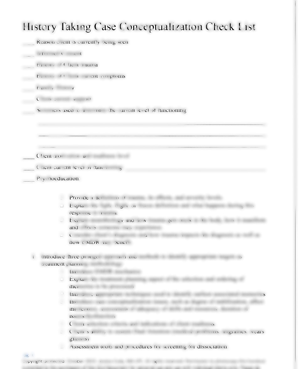 History Taking Check list for EMDR therapy