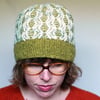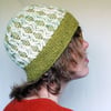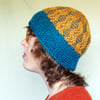 textured zig-zaggy hat with garter stitch brim for any gauge