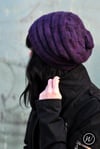 Alveare’s deep welts pile up like a iconic beehive, creating an irresistibly wearable slouchy Hat with an optional bobble. The alternating bands make for a simple, gratifying knit that shows the beauty of both sides of stocking stitch – choose a soft, smooth yarn such as this BFL singles for best effect.
