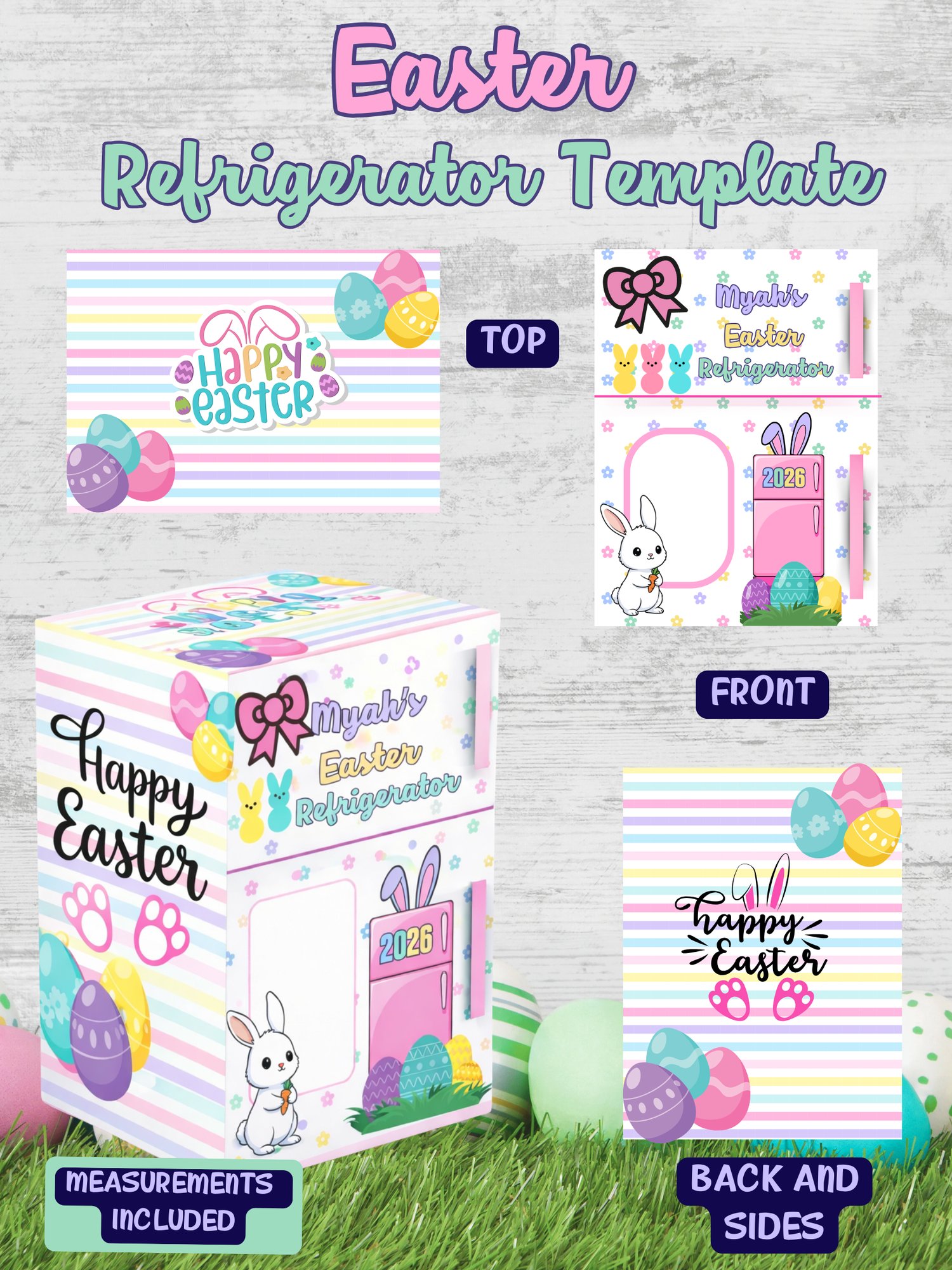 Easter Refrigerator Treat Box Canva Template | Editable Easter Treat Box | Mini Fridge Easter Box Digital Download