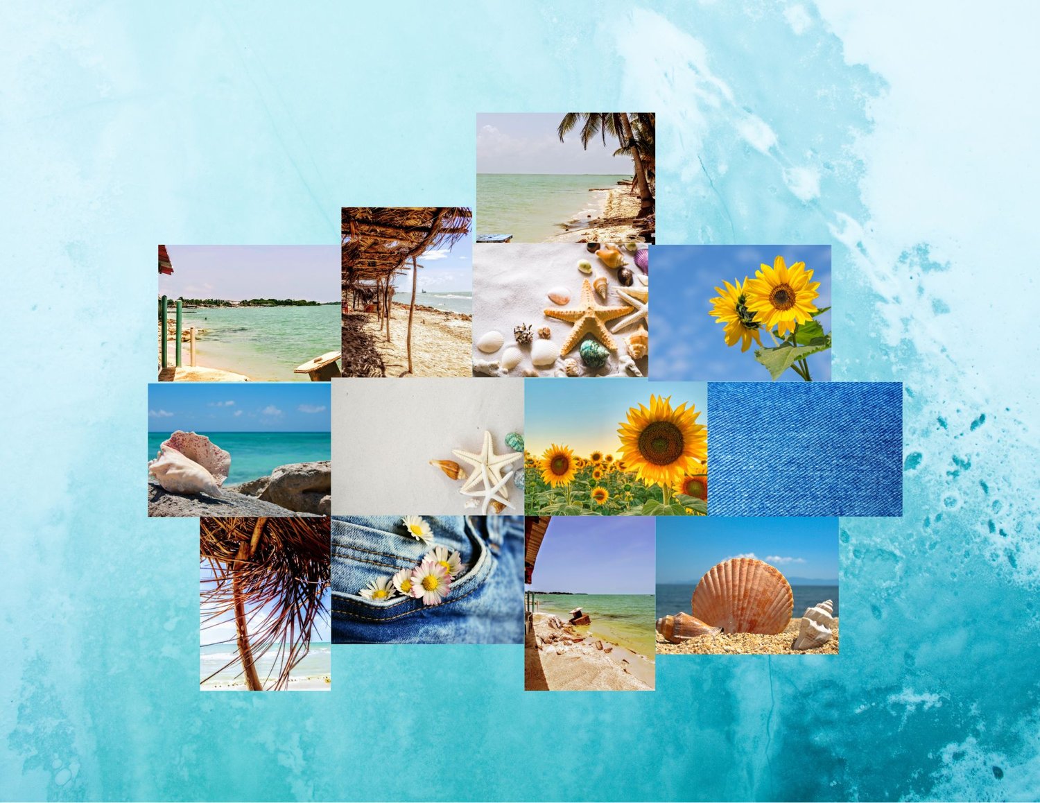 Beach Aesthetic Photo Collage Kit perfect for Wall Collage, Scrapbooking, Card making, DIY Stickers & Magnets