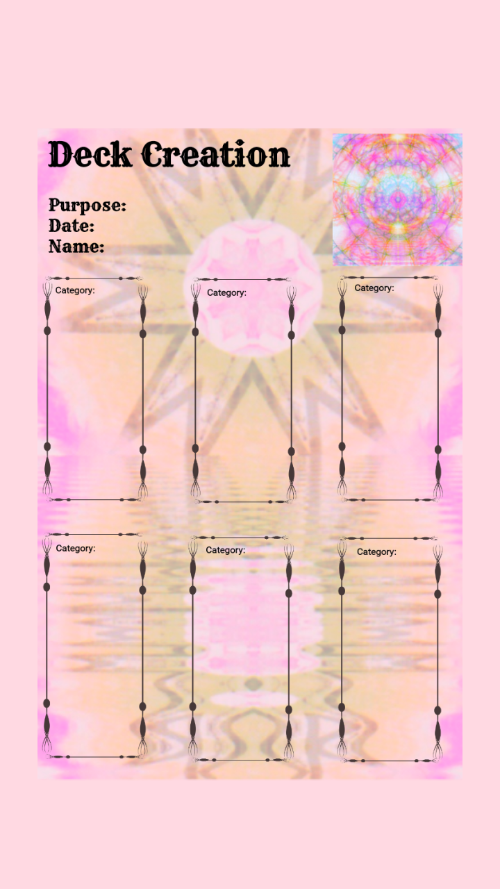 5. Deck creation page. For those who want to create a deck. This has the soul star chakra grid on it. Connecting you to your soul to bring in our energy decks. This chakra connects you to talents of all aspects of your soul and monad. The other grid is for the casual body to bring in its gifts to the world. The casual body is another way to connect to your soul.