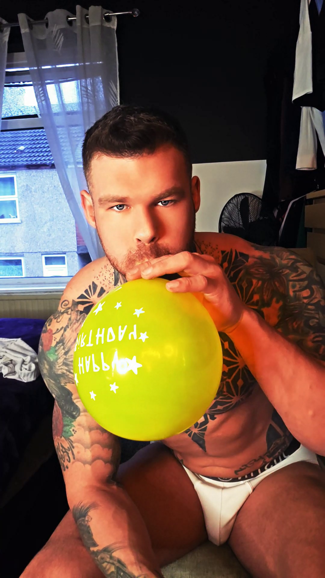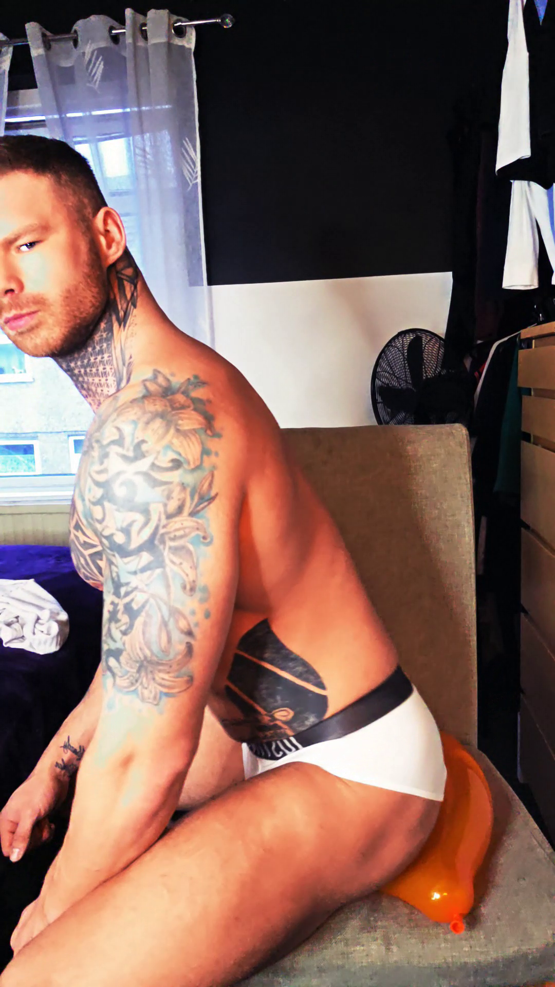 Ethan – Big Man, Balloon Sit Pops (Tattooed & Muscular)