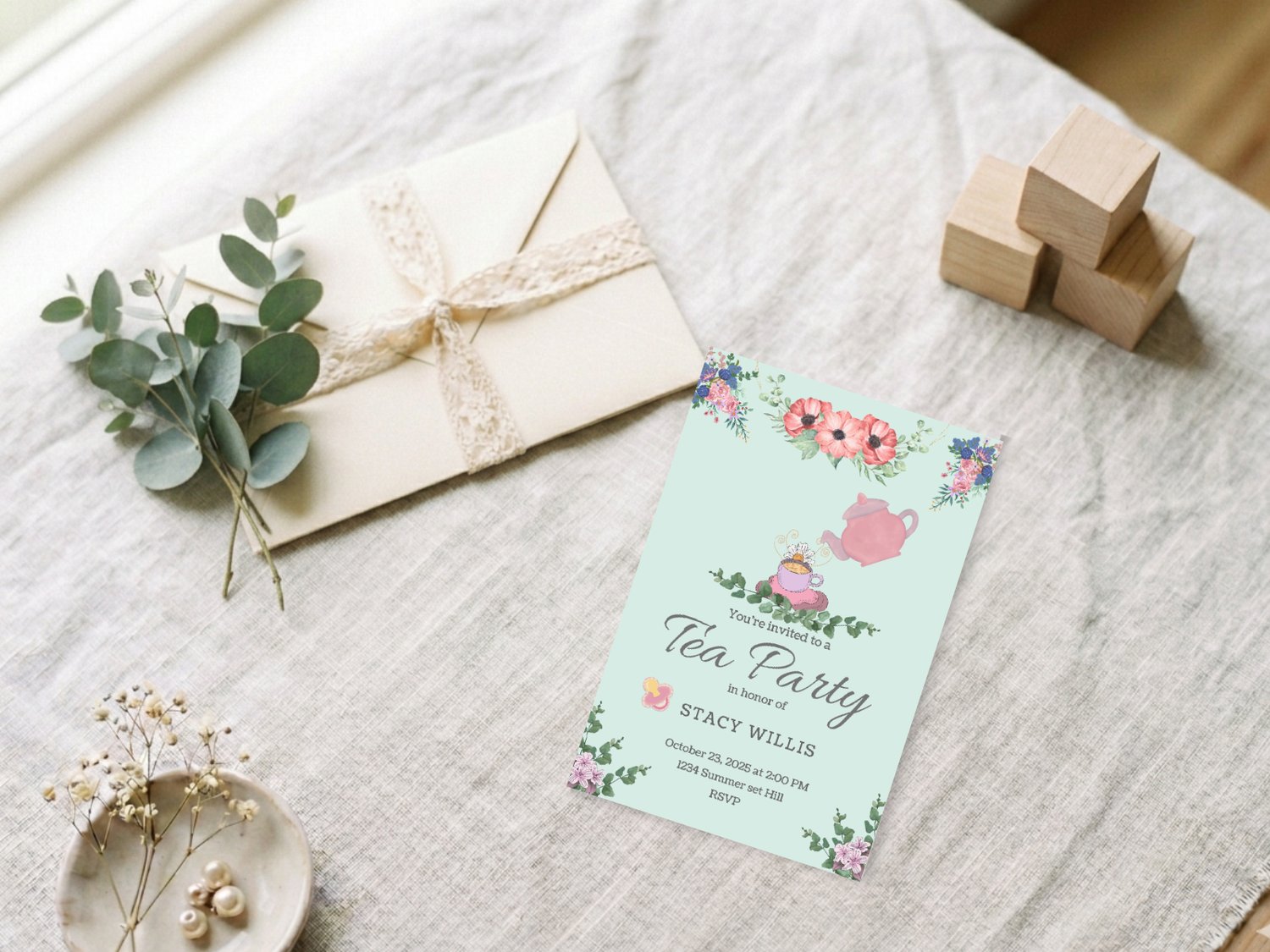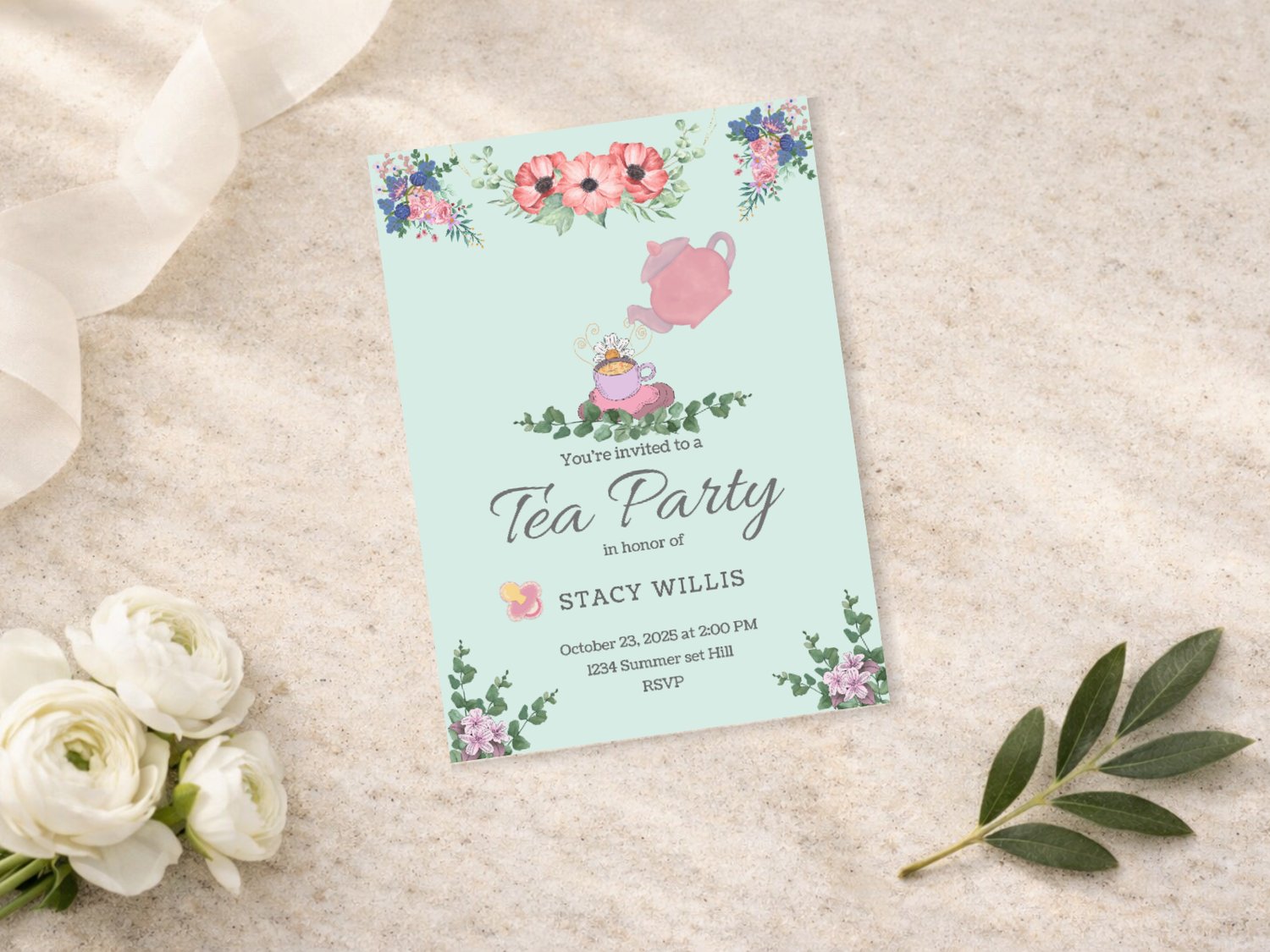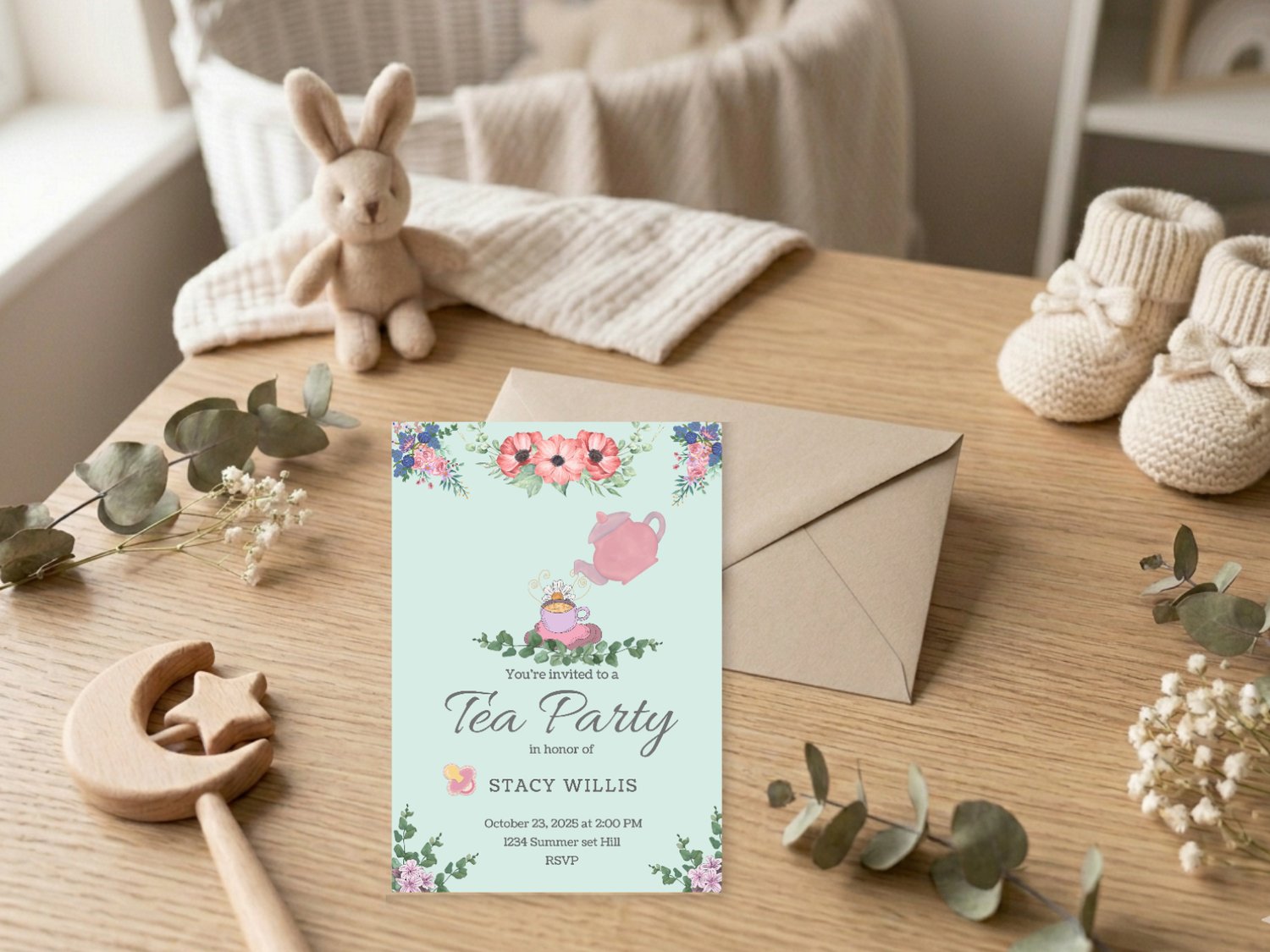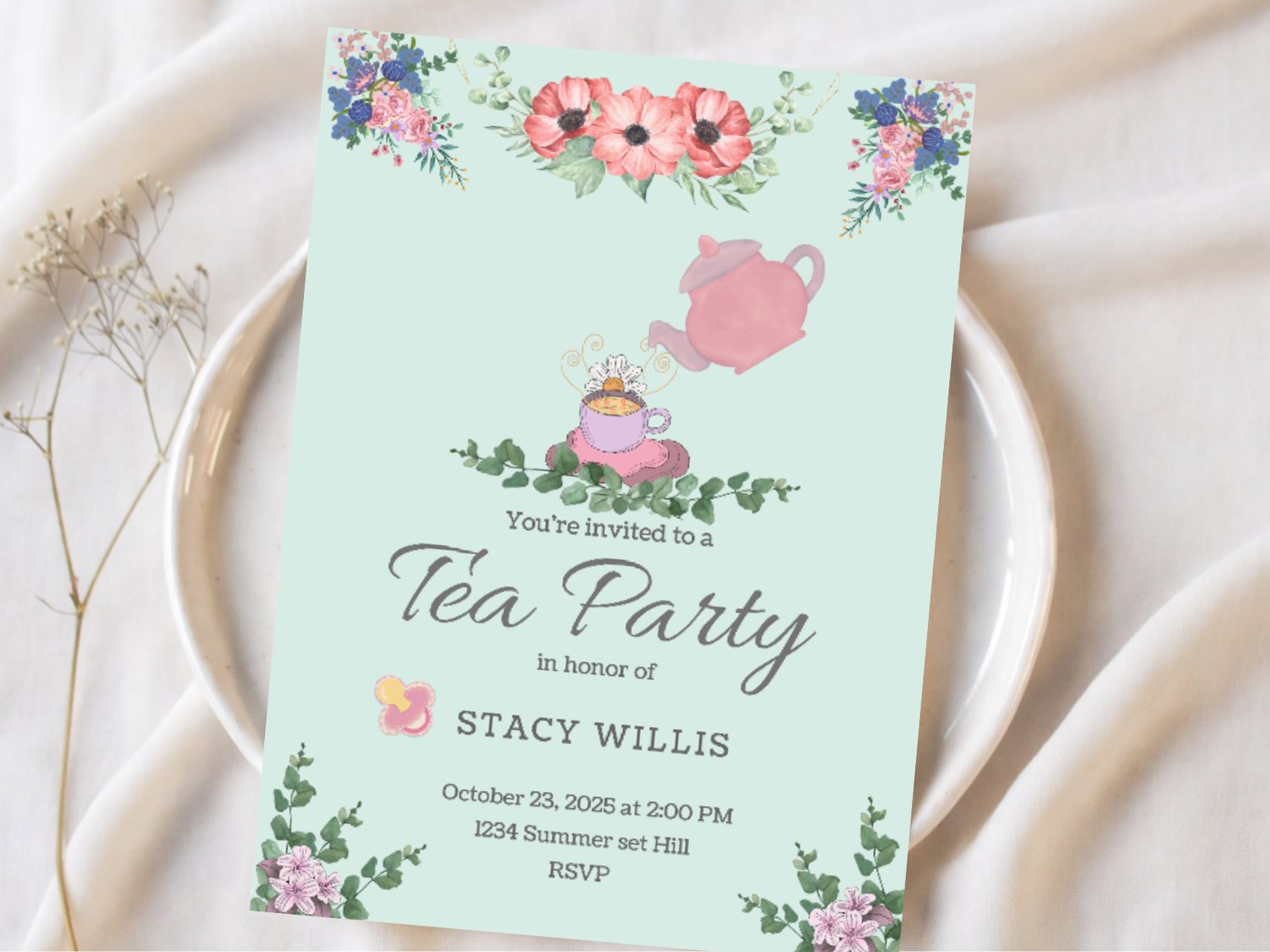 Tea Party Baby Shower Invitation – Printable Girl’s Baby Shower Invite