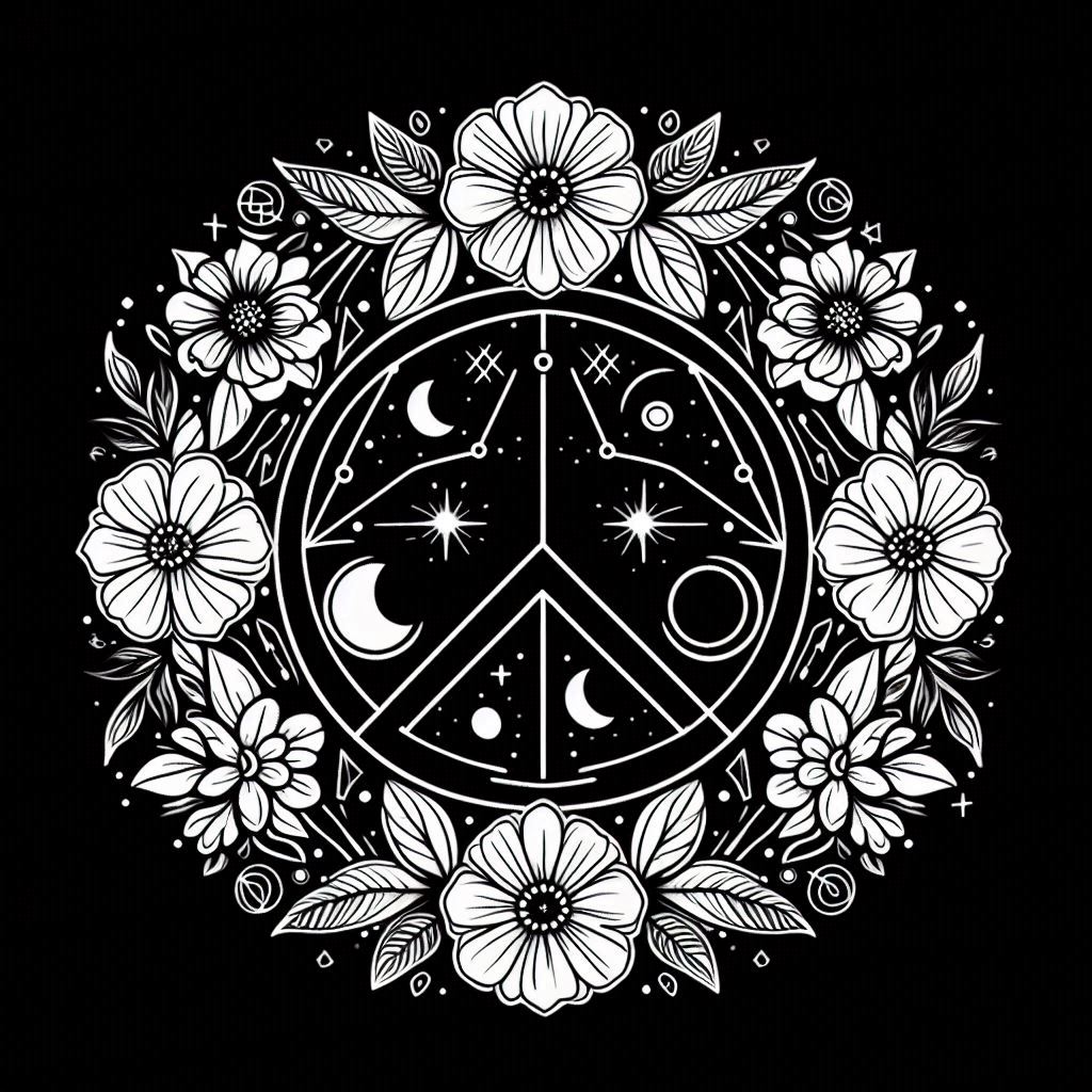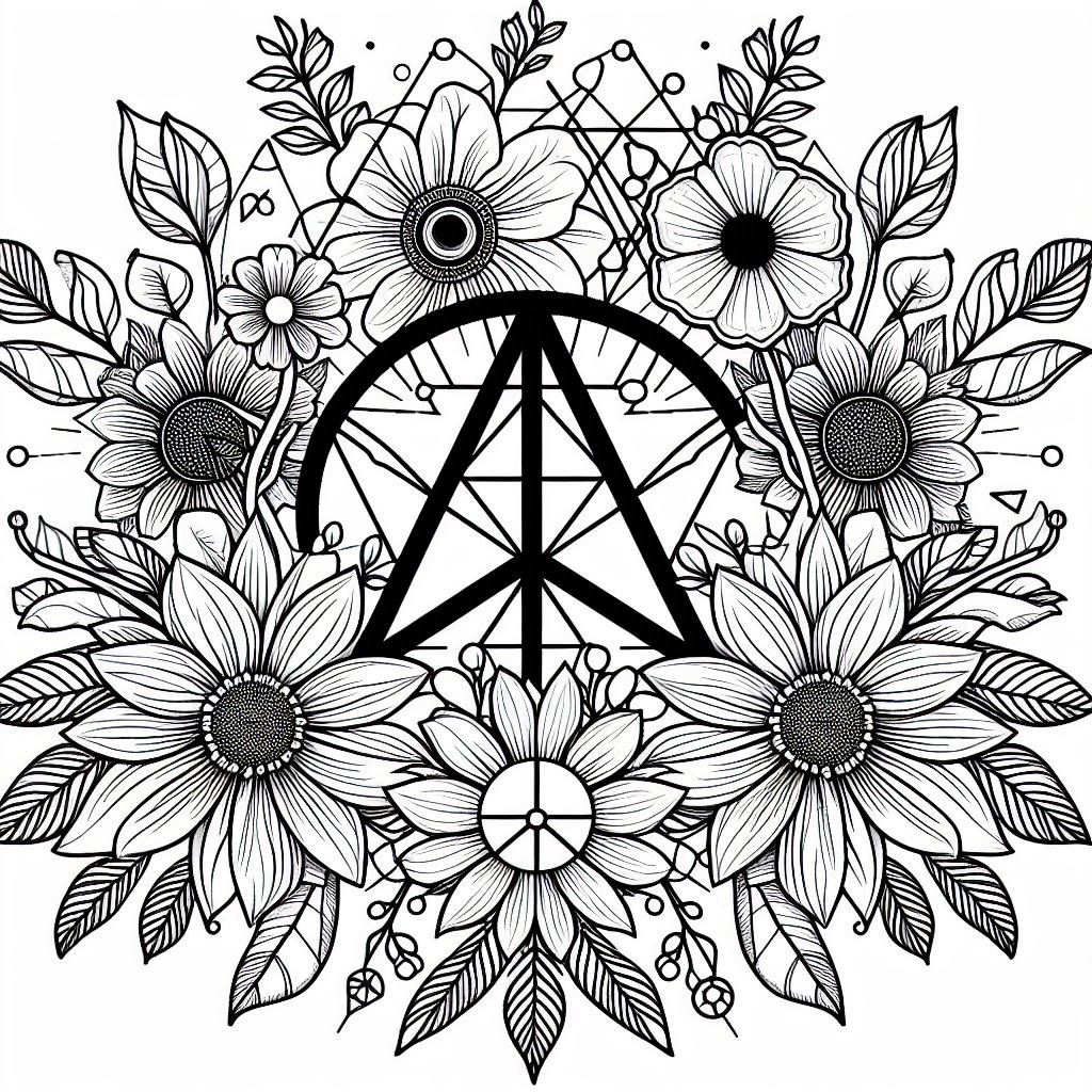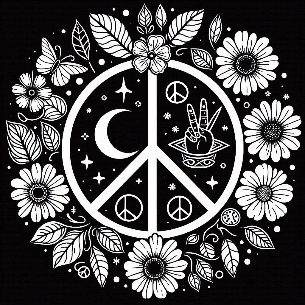 Triple Moons Flowers Peace Signs Coloring Book 15 Pages