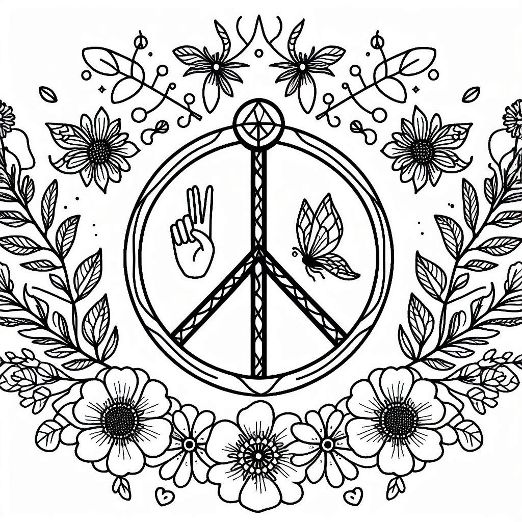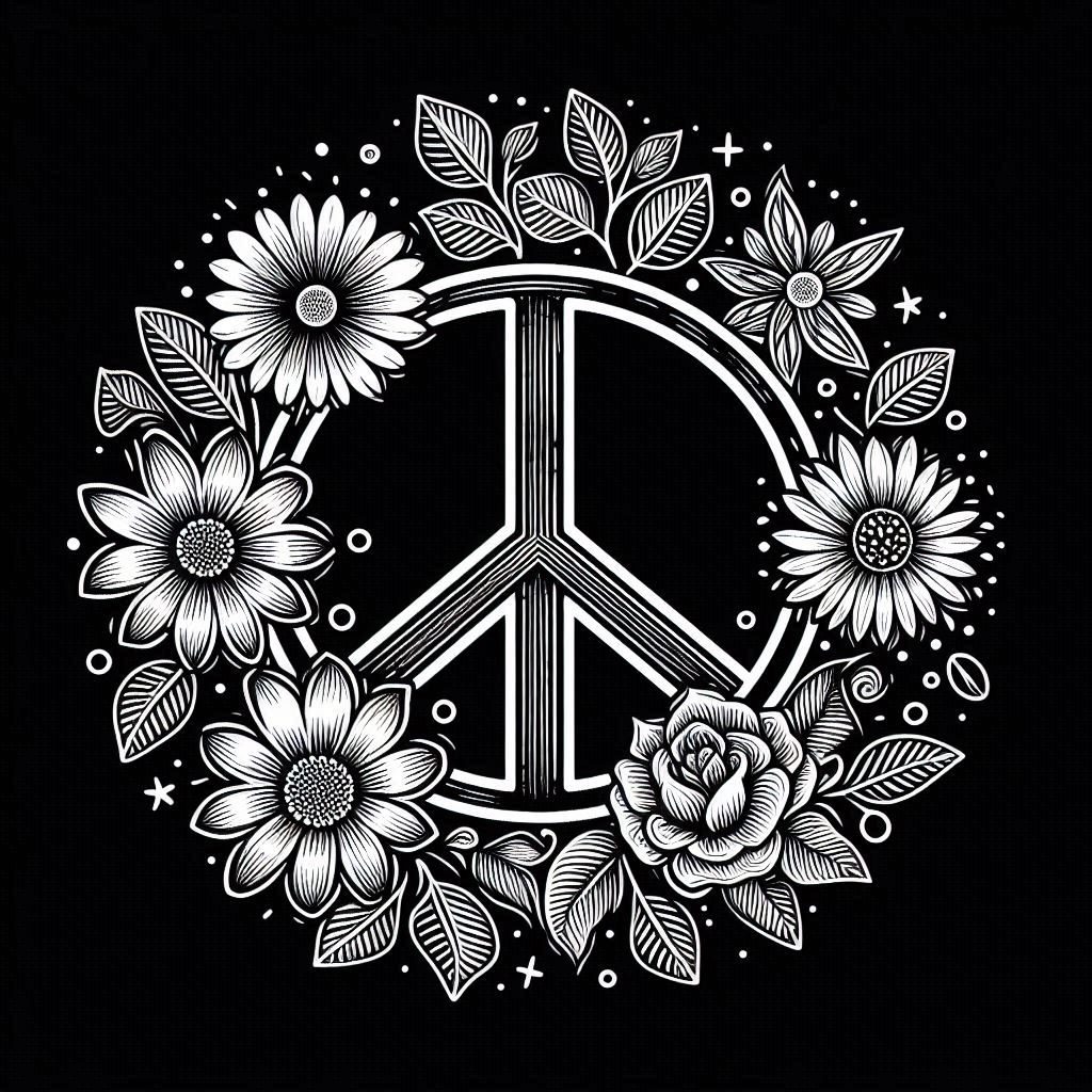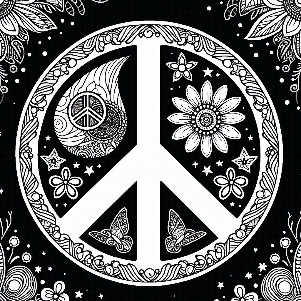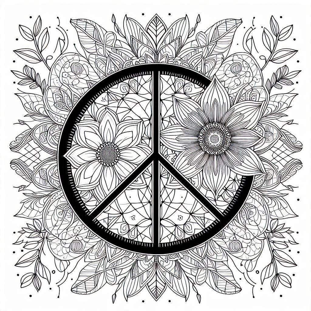 Triple Moons Flowers Peace Signs Coloring Book 15 Pages
