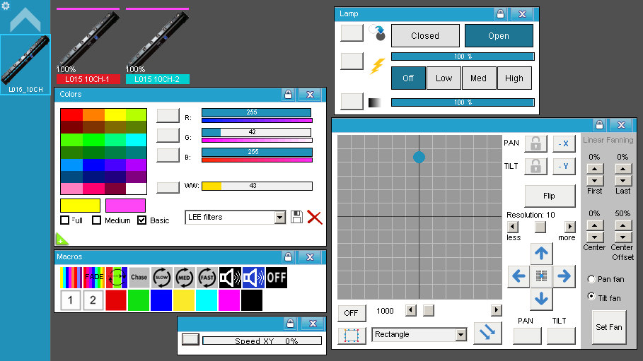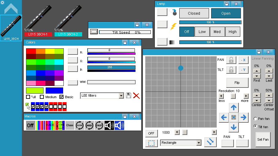 • Con el Fixture de 38 canales: El color individual de cada led (o todos juntos si quieren).