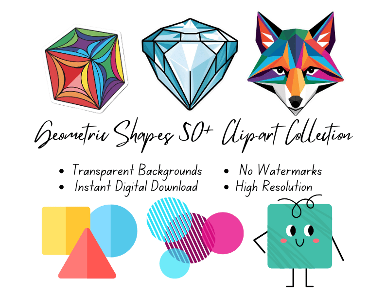 Geometric Shapes 50+ Clipart Collection | High-Resolution Digital Printables | Instant Download | No Watermark