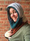 I love accessories with multiple styling options. Feeling bold? Wear the bright color in the front. Feeling a little more subdued? Wear the neutral color in the front! Find that you’re a little chilly? Pull the cowl up to be a hood. Short row shaping in laceweight mohair juxtaposed within a DK weight stockinette fabric creates a surprisingly intuitive knit, perfect for conversation with friends or sneaking in a few rounds during some downtime.