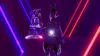 She communicates through music, lights, and fulfills her dreams with the bass of her speakers! Her presence brings joy to everyone, even during challenging times in this dystopia. With the constant support of Coil and Hacks on the dancefloor, Decibell feels invincible.