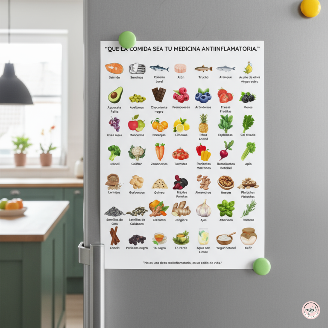 Diseñado para personas que priorizan su bienestar, esta lista imprimible te muestra de manera clara y rápida qué alimentos combaten la inflamación, mejoran tu digestión y aumentan tu energía.