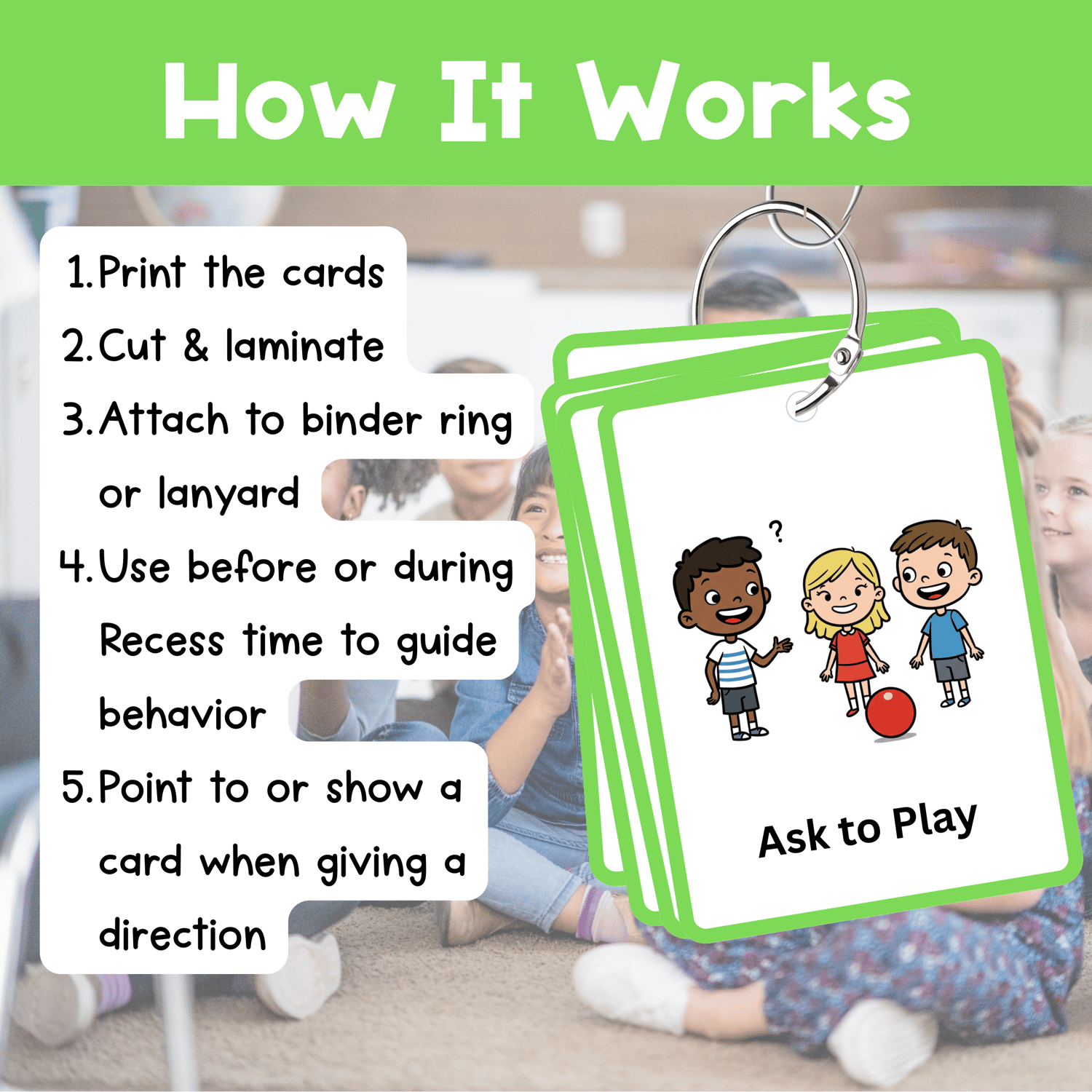RECESS & PLAYGROUND Visual Cue Cards Lanyards Behavior Visual Support Non Verbal Communication