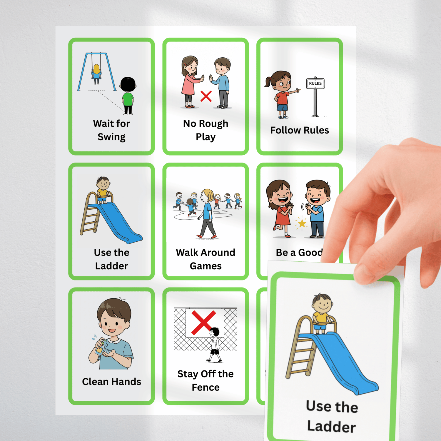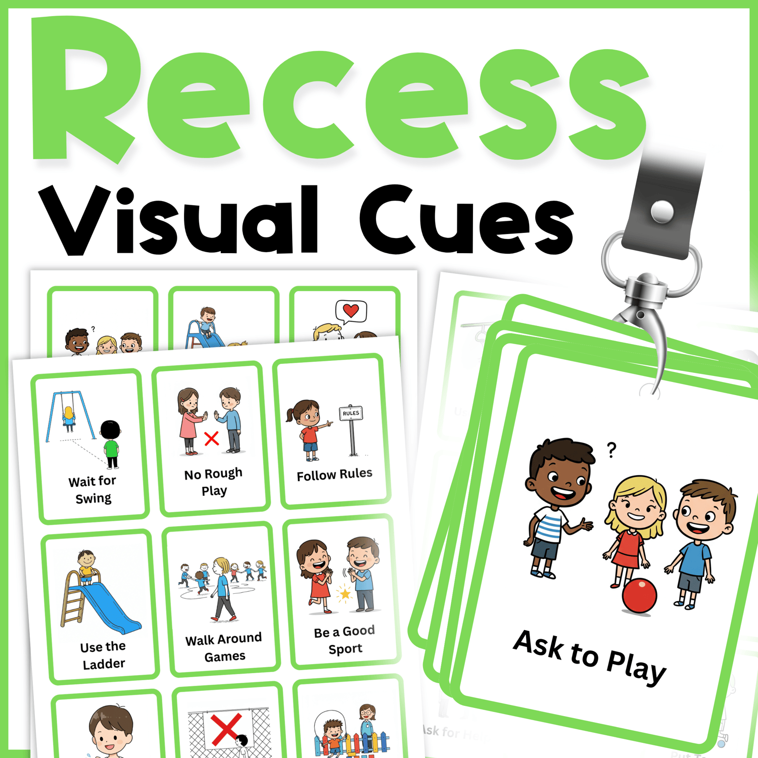- 27 lanyard-sized visual cue cards for recess and Playground routines