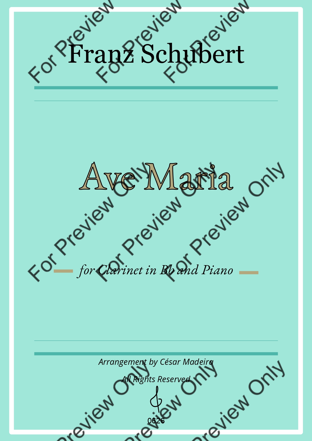 Ave Maria by Franz Schubert. Arrangement for Bb Clarinet and Piano. With Full Score and Individual Parts. Have fun!