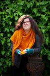 The Tielke Shawl, named for a family of musical instrument makers, is an asymmetric triangular shawl featuring a garter stitch ground and a cable panel which flows from simple twisted cables, representing the strings of musical instruments, into a complex intertwining motif. The Tielke shawl is part of the Twisted Strings Collection - five accessory patterns inspired by the decorative tracery found on Baroque string instruments.