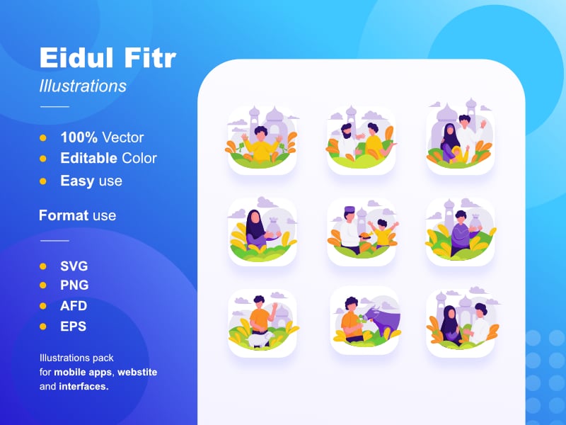 Eidul fitr character packs comprises 10 stylish illustrations.