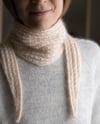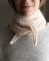 This cozy little scarf is worked in beautiful cable pattern from one tip to another. It’s a quick knit and a perfect use for the leftover yarn from a bigger project. The size is easy to adjust.