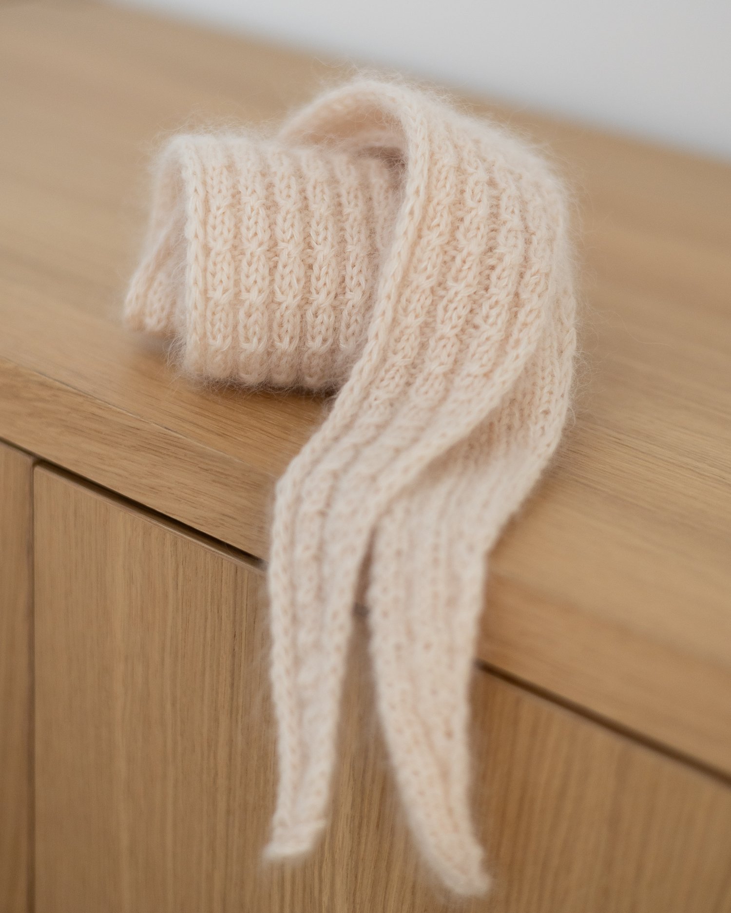 The sample is shown in Filcolana Arwetta (230 yds / 210 m per 50 g; 80 % merino, 20% nylon) in color 383 and Filcolana Tilia (230 yds / 210 m per 25 g; 70 % mohair, 30 % silk) in color 101.