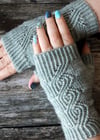 Meaning wild and untamed in Scots, Rammage is a simple but fun fingerless mitts pattern with a twisted rib and lace pattern with which reminds me of owls, stags and crashing waves. The pattern wraps around the side of the hand and brushes the edge of the palm. For the perfect fit, knit a size which gives you at least 1 cm (0.5”) of negative ease. Check out Fiadhta for the matching socks!